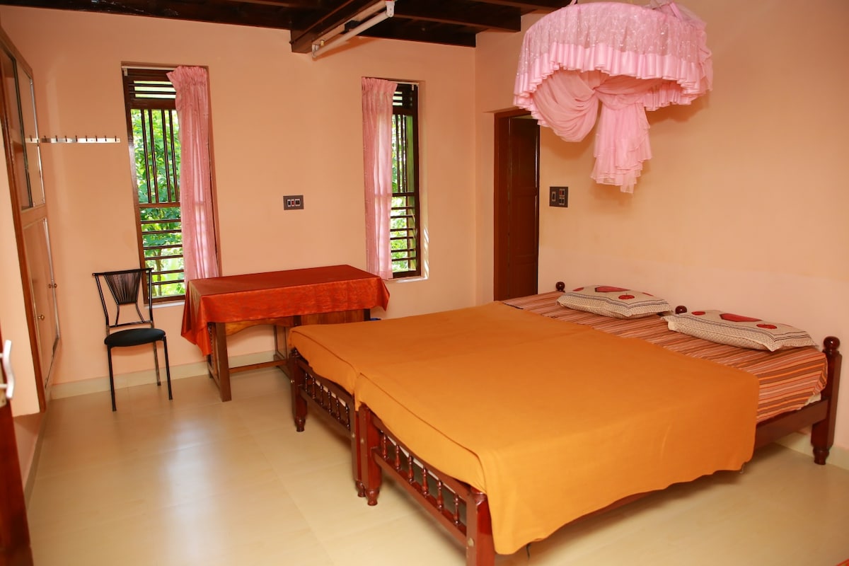 This is a charming, stylishly decorated 2-bedroom apartment, with attached bathrooms in both bedrooms. It is simply the finest bed and breakfast you will find in Wayanad. The apartment is in the heart of Mananthavady town, but is tucked away in a serene corner, so that it is both accessible but peaceful. We also offer a treehouse stay, barbecue and Ayurvedic massage. Sink into the Wayanad-an way of life and rejuvenate yourself.