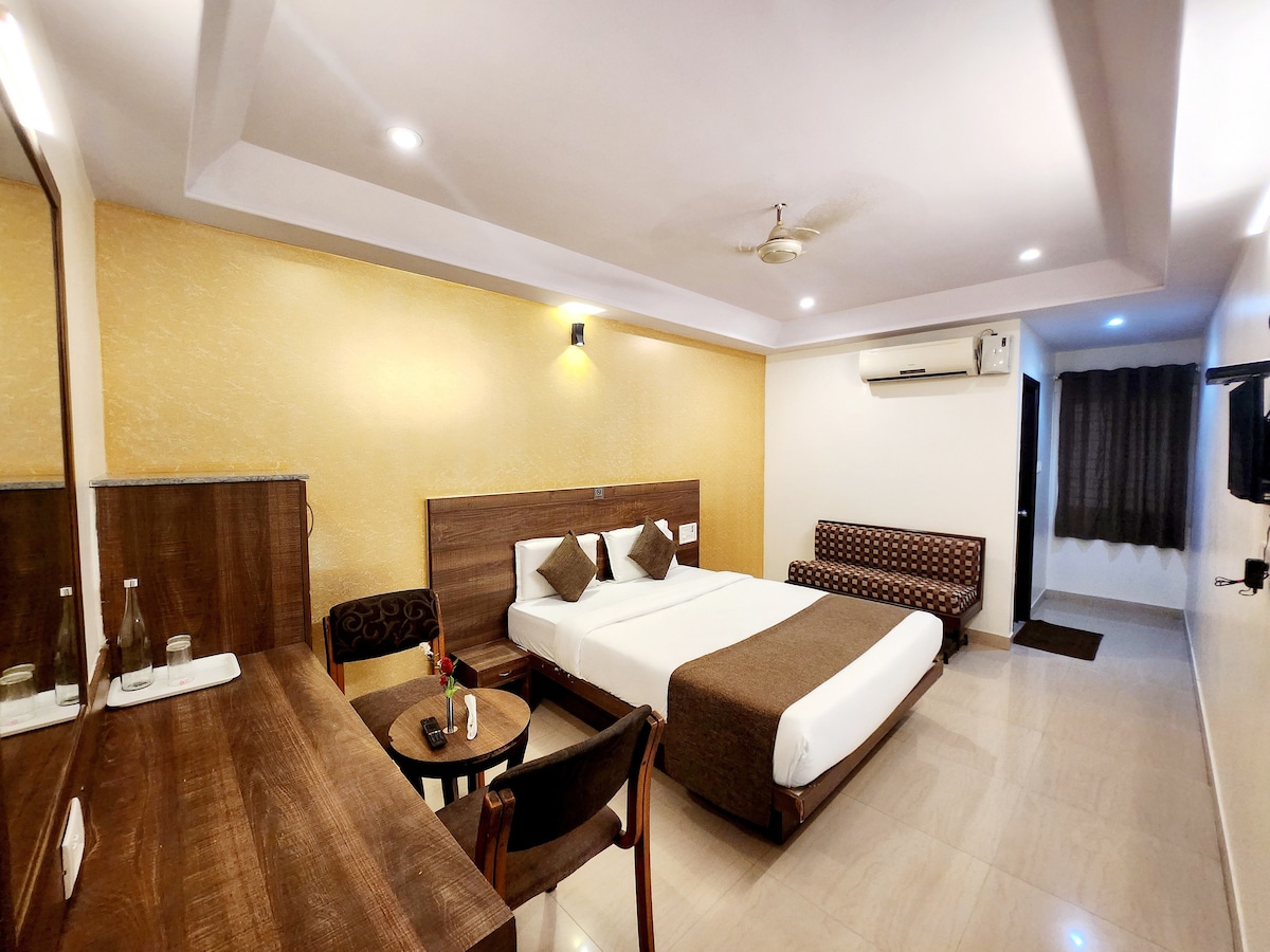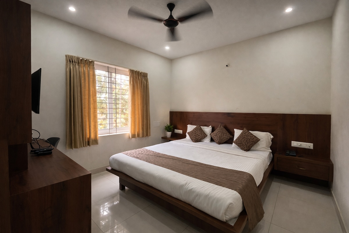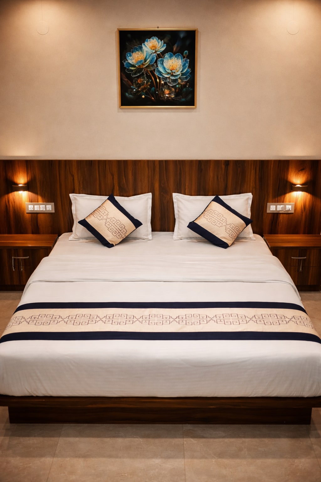Step into comfort and sophistication in our Deluxe Room, designed to provide a refined stay experience with extra space, elegant décor, and enhanced amenities. Ideal for couples, families, and business travelers, the Deluxe Room blends modern convenience with Mysuru’s warm hospitality.Relax after a long day of sightseeing or meetings in a serene, well-appointed environment that ensures both comfort and style.