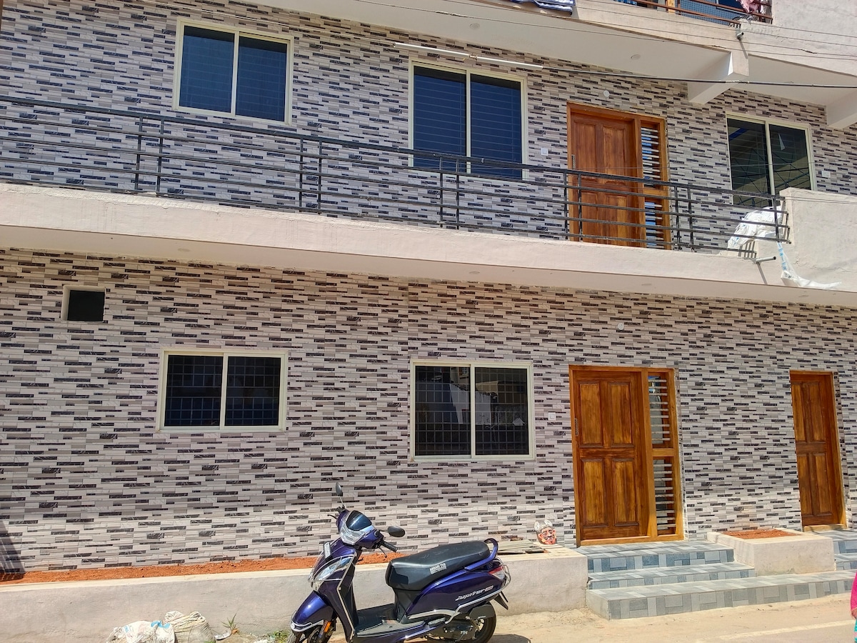 Reconnect with nature at this unforgettable escape.Forget all you negativity in the midst of chirping birds and tender sunshine. Perfect place for all those who wants to relax in the midst of work burden The house is in prime location, around 7km from the railway staion and 10 km from Bus stand Suyoga Multispeciality hospital is 100 m at reach cycling also avalibale kukkrahalli lake lingambudi lake are just 2 km away from the place. sorry we wont host unmarried couples
