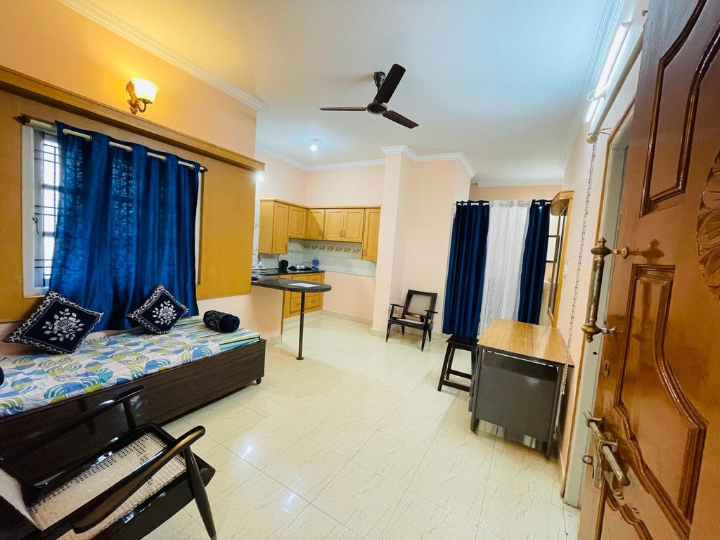 The space that we have is a studio apartment and has most of the basic amenities required for a pleasant and comfortable stay. It is situated in a residential area on the outskirts of Mysore city close to Chamundi Hill and Lalitha Mahal Palace, away from the hustle and bustle of city life. If you are someone who enjoys a morning walk, just 2 km away is a scenic and quiet park (KC Layout) close to the helipad, or MG road towards Radisson Blu. (Please read the house rules/ manual)