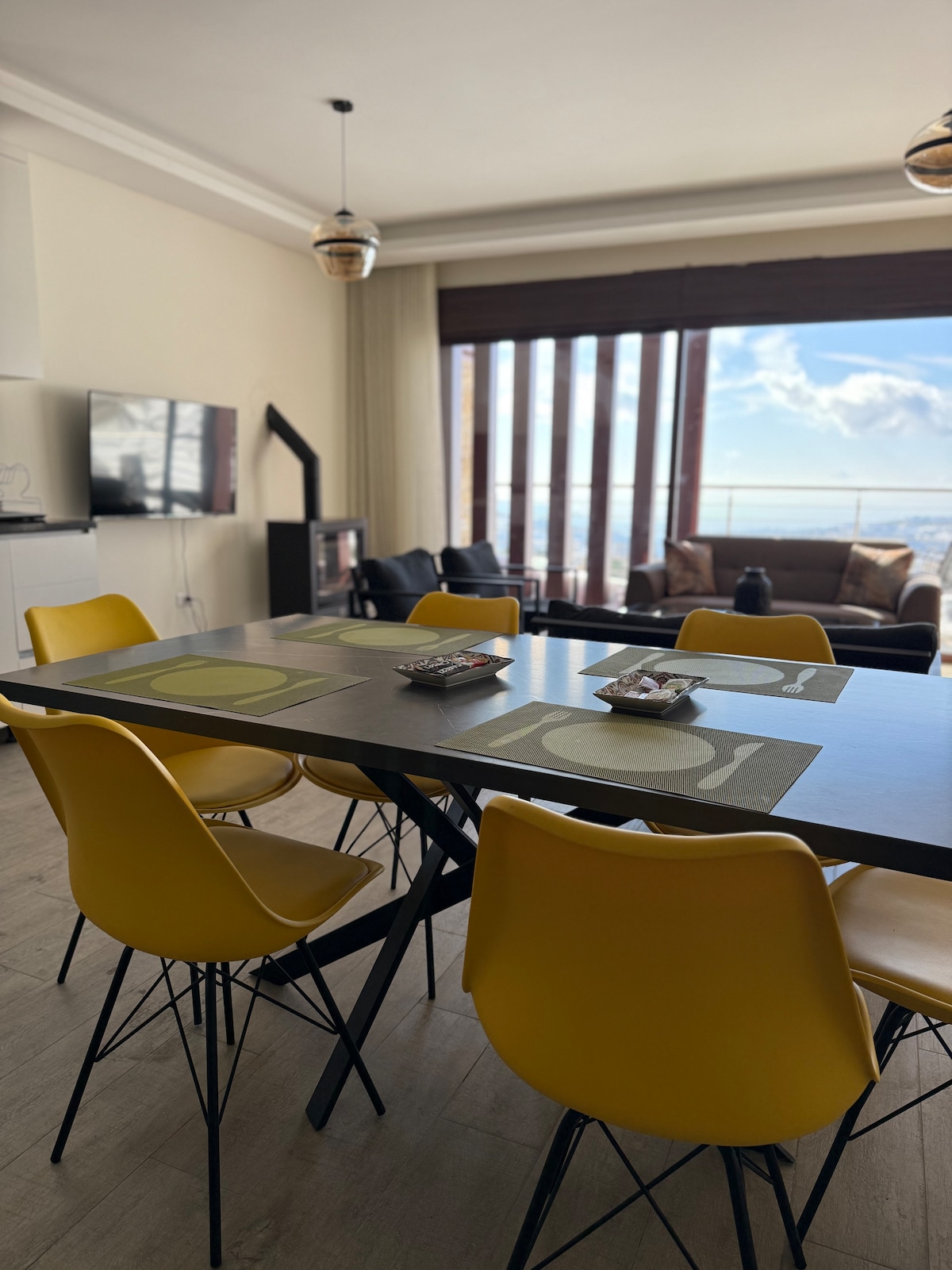 Welcome to our chic 2-bedroom retreat in the mountains of Kfardebian, Lebanon. With stylish decor and thoughtful touches, our cozy unit offers the perfect getaway for families or friends, accommodating up to 5 guests. Whether you're curling up by the chimney on a chilly evening or soaking in breathtaking mountain views from the terrace, relaxation awaits at every turn. Just moments away, adventure starts with skiing and hiking opportunities aplenty. Book your stay with us in Kfardebian today!