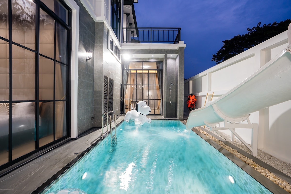 Escape and retreat 2-bedroom private pool villa (1 room locked, shared by owner), ideal for a relaxing or playful stay. • Private pool & Garden • Game room with racing sim + 120” cinema TV • Full kitchen for home-cooked meals • BBQ pit in the garden • 5 min walk to the beach • Walking distance to the Viewpoint & Buddha Temple • 5 min to Bali Hai Pier • 2 min walk to 7-11 • 5 min by taxi to Walking Street • Surrounded by local restaurants, cafes, and bars • Pet-friendly Perfect for your Vacation