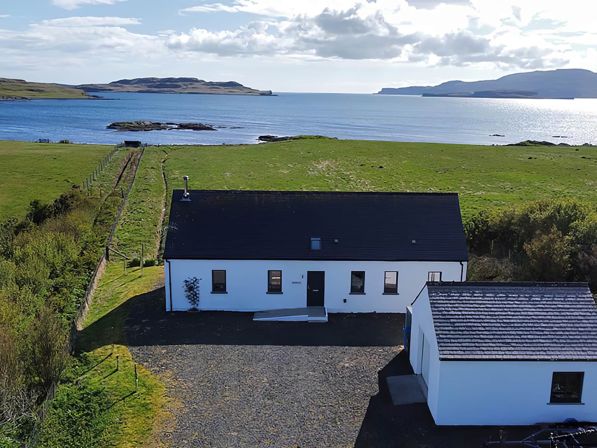 Shore-side house with a sandy beach just across a very quiet lane. Stunning view of Broadford Bay & Beinn na Caillich. Excellent base location for touring Skye & the surrounding area. After four great years of hosting with AirBnB within in our home, we've used the covid hiatus to transform the old croft house into a spectacular and luxurious retreat. In previous reviews, you'll see up to four guests in one room; this has been upgraded to 2 guests in the whole cottage...