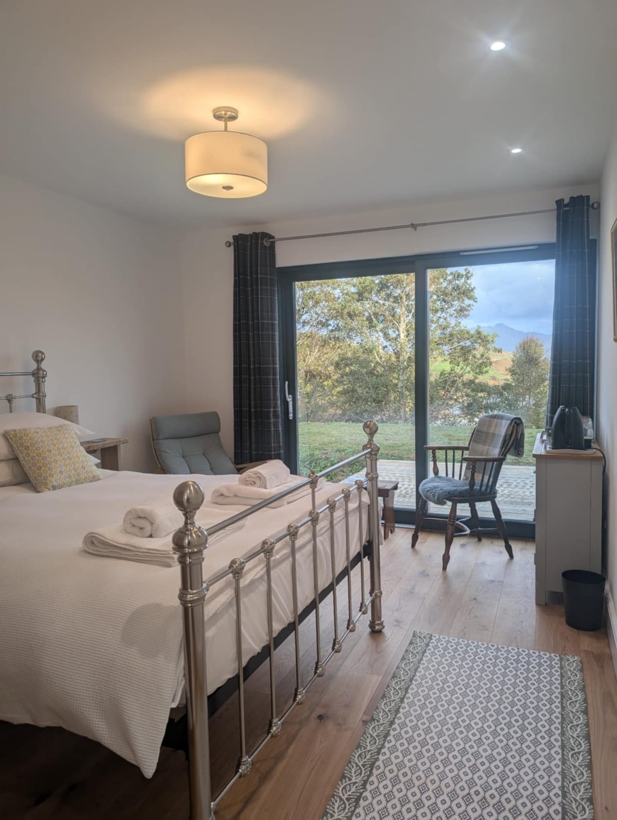 Two miles from Portree, Boisdale House offers peace, quiet and uninterrupted views. Our guest accommodation sits as an annexe on our house, providing space and privacy within a stunning rural setting. Our luxurious super-king room with en-suite bathroom and private entrance lets you come and go as you please. A large picture window gives stunning views of the hills of Skye. Breakfast options are provided within the room, including porridge, granola, yoghurt, croissant, fruit compote & jam.
