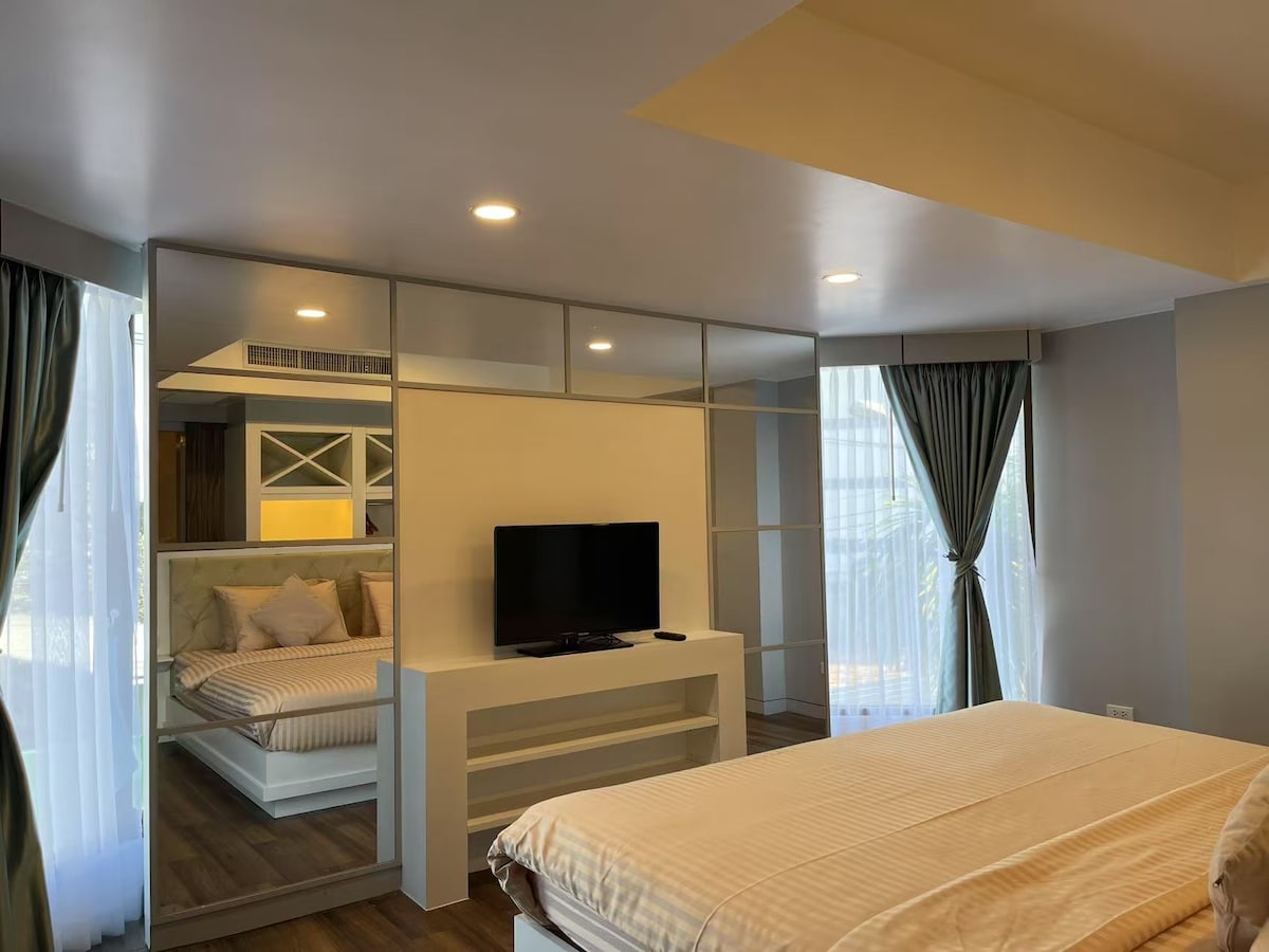 perfect accommodation in the heart of Pattaya, offering convenience, safety, and proximity to everything you need—just a few hundred meters' walk to Central Mall, the beach, restaurants, convenience stores, and more. providing a serene retreat with stunning sea views. Enjoy the rooftop swimming pool and take in the breathtaking 360-degree panoramic view of Pattaya Beach and the city skyline at night. The room is fully equipped with all the essential amenities, including bedding