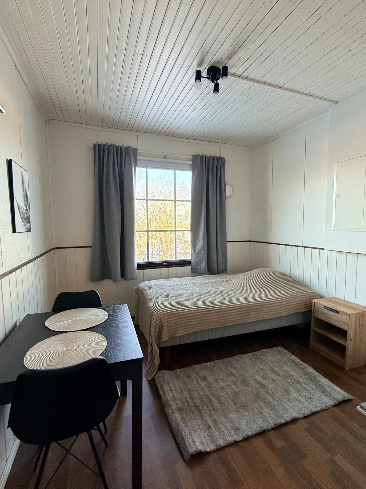 Yhdelle tai kahdelle monipuolinen, kodinomainen huoneisto Mynämäellä. Tarvittaessa myös kahdelle lapselle saadaan vuode sijattua vuodesohvasta. Huoneisto soveltuu hyvin pientä ylellisyyttä kaipaavalle, työmatkan rauhalliseksi etätyöpisteeksi. Aarno1 on sijainniltaan loistava kun matkustaa E8-tietä ja kaikki kylän palvelut ovat käytettävissä. Rauhallinen sijainti takaa hyvät yöunet. Aarno1 on varustettu ulkopore-ammeella, 55"TV:llä, nopealla 5G Wifi-liittymällä ja kaikilla kodin tarvikkeilla.