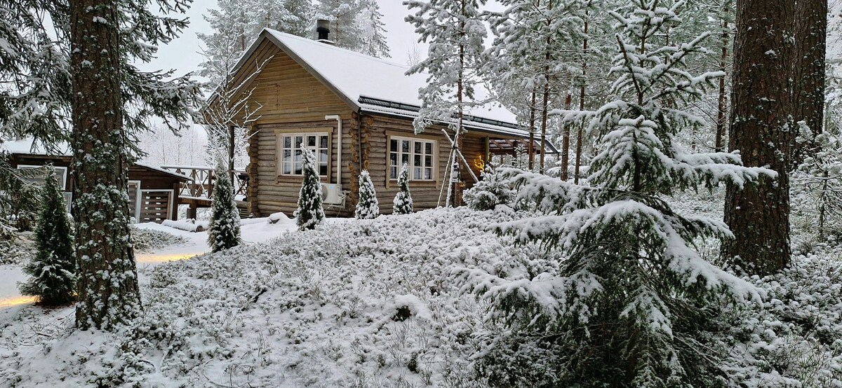 The cottage is located on a large 3.5-hectare lot in a secluded area surrounded by small ponds. You can enjoy the gentle heat of the wood sauna and then relax in the warm water of the hot tub. At sunset, you can see moose, deer, and other forest animals grazing in the nearby field from the terrace. You can also head to the nearby forests to pick mushrooms and berries and prepare dinner from them. Small pets are allowed!