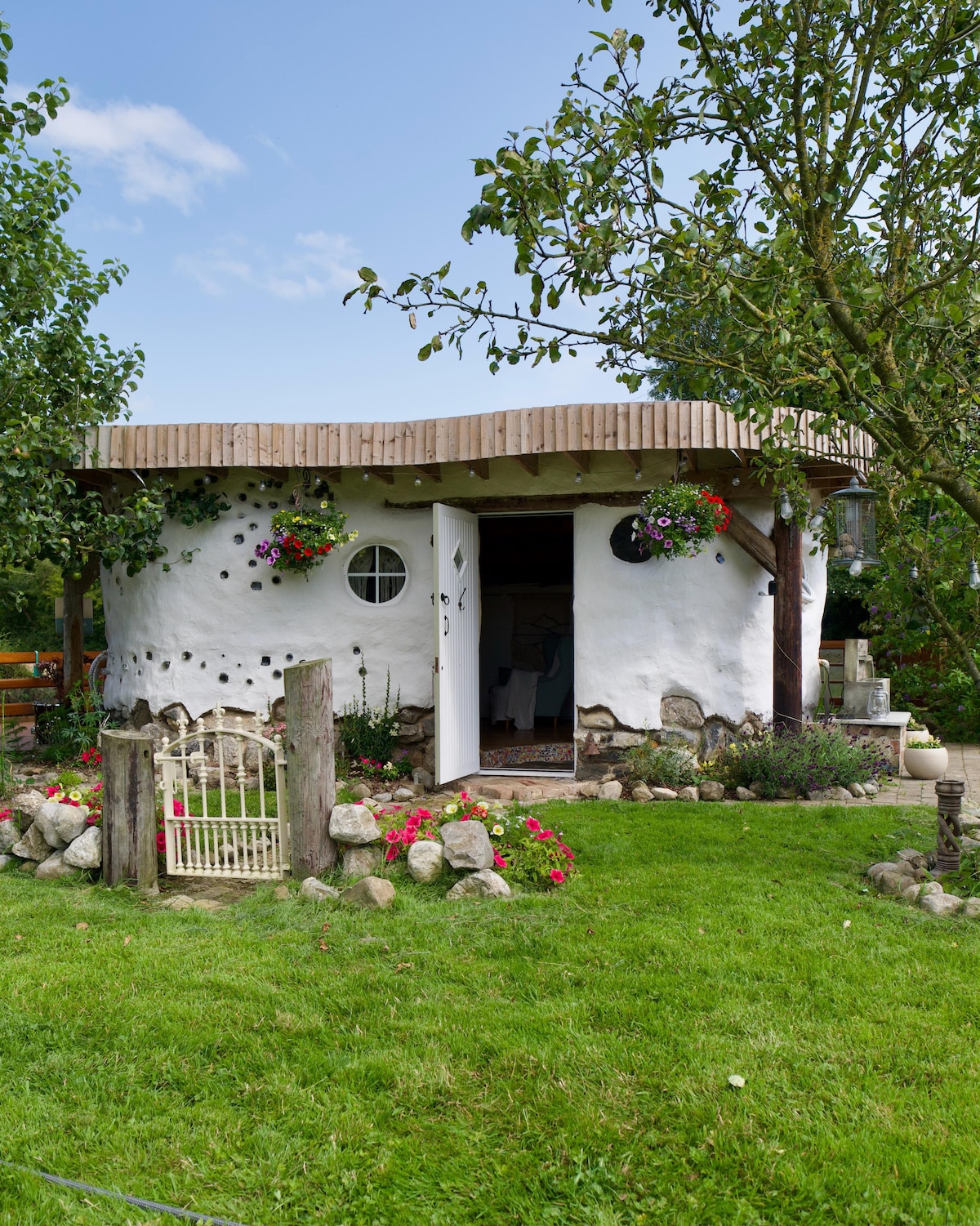 You'll love this romantic escape.Nestled at the end if our garden this beautiful host built cob cottage is cosy and different .The cottage has its own whimsical garden and a wrap around deck where you can relax in the hottub (Feb-nov) overlooking the countryside or cook up a storm on the patio kitchen . The openplan living space inside the cottage is enchanting with the round windows , glass bottle wall ,cob sofas and bespoke oak kitchen and a comfortable double murphy bed .Central heating .