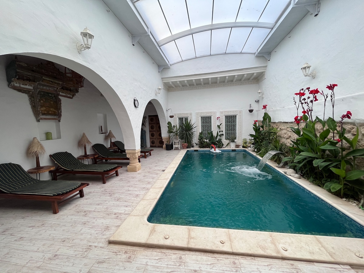 La suite La Marsa est élégante et confortable au sein de Dar Colibri, pensée pour le calme et la détente. Elle propose une literie de qualité, une salle de bain privative et une décoration soignée, créant une atmosphère douce et apaisante, idéale pour se reposer. Les voyageurs ont accès aux espaces communs de la maison : piscine d’eau salée, terrasses et espaces de détente. Le hammam traditionnel est entièrement privatisé, sur réservation. Petit-déjeuner maison servi chaque jour.