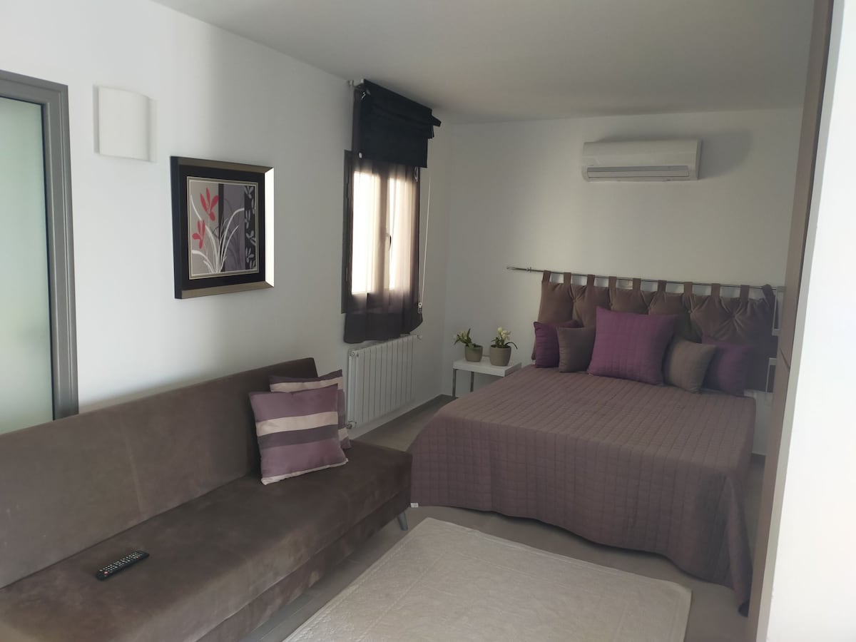 Le loft est situé dans un quartier résidentiel calme à 1mn à pieds de la plage avec parasol privé .il vient d être construit. Il y a une chambre dotée d un grand lit et un fauteuil convertible 1 place .une salle de douche et une grande terrasse ou on trouve une cuisine bien équipée et abritée . Meuble de jardin et un grand parasol et un spa à bulle . Le voyageur à un accès direct à la plage. Remarque : le spa est disponible à partir du 15 mai.