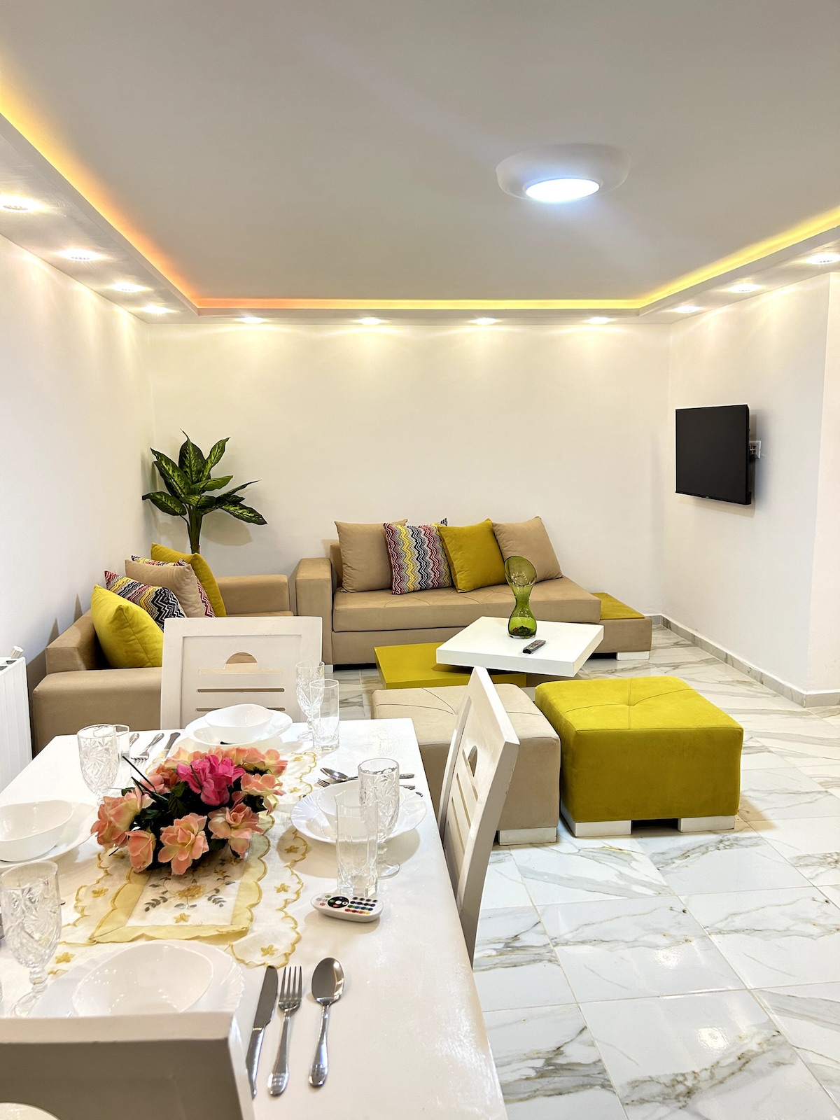 Residence Royal- in the tourist area of Hammamet close to all amenities apartments for rent for tourists, short or long term, well equipped with tv, air conditioning, kitchenette, concierge service, 1 bedroom + living room for 2 to 4 people ideal for couples or families 2 bedrooms + living room for 6 people available on another ad Have fun with the whole family in this chic accommodation.