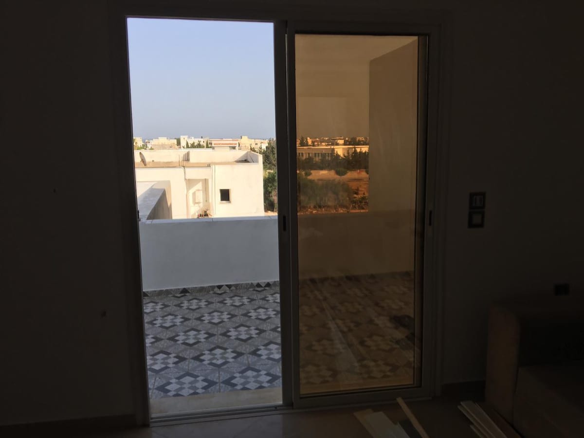 S+1 fraichement construit de haut standing et meublé avec gout au rez de jardins, avec accès à une terrasse. Situés au Cap Bon à Ezzahra (7km de Kélibia). Un endroit tranquille, paisible et sécuritaire. L'appartement S+1 possède 1 chambre fermée avec un dressing et un grand lit. Un salon et cuisine à air ouverte avec une grande porte fenêtre qui donne sur une terrasse avec barbecue Distance de la plage: 1 minute de marche