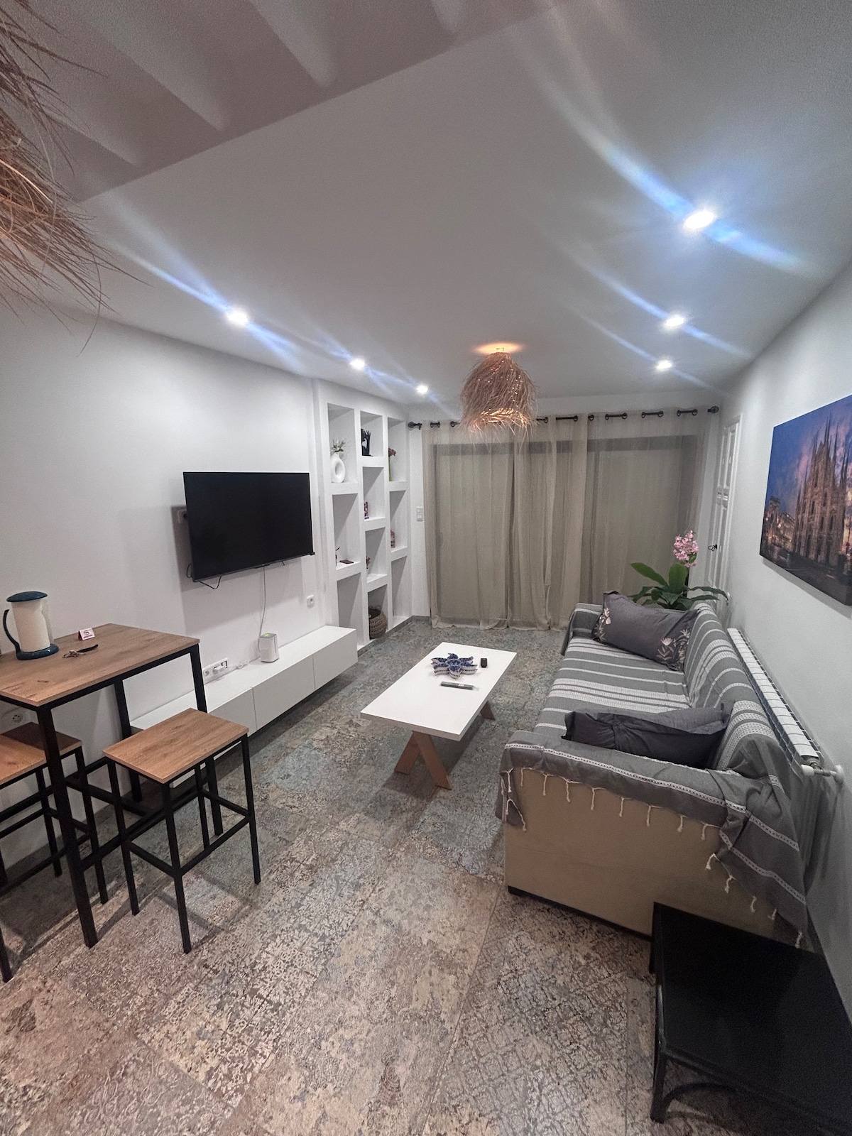 Rez-de-chaussée S+1 en plein centre ville de NABEUL à seulement 100m de la jarre et de la gare , à 100m des Souks traditionnels ainsi que de la station de Taxis desservant Hammamet. Plage accessible à pied (500m). Vous trouverez également à proximité immédiate tous les services essentiels : supermarchés, restaurants, cafés et salons de thé. L’appartement est parfaitement équipé pour assurer un séjour confortable : WIFI , climatisation, et une terrasse avec jardin privatif sans vis-à-vis.
