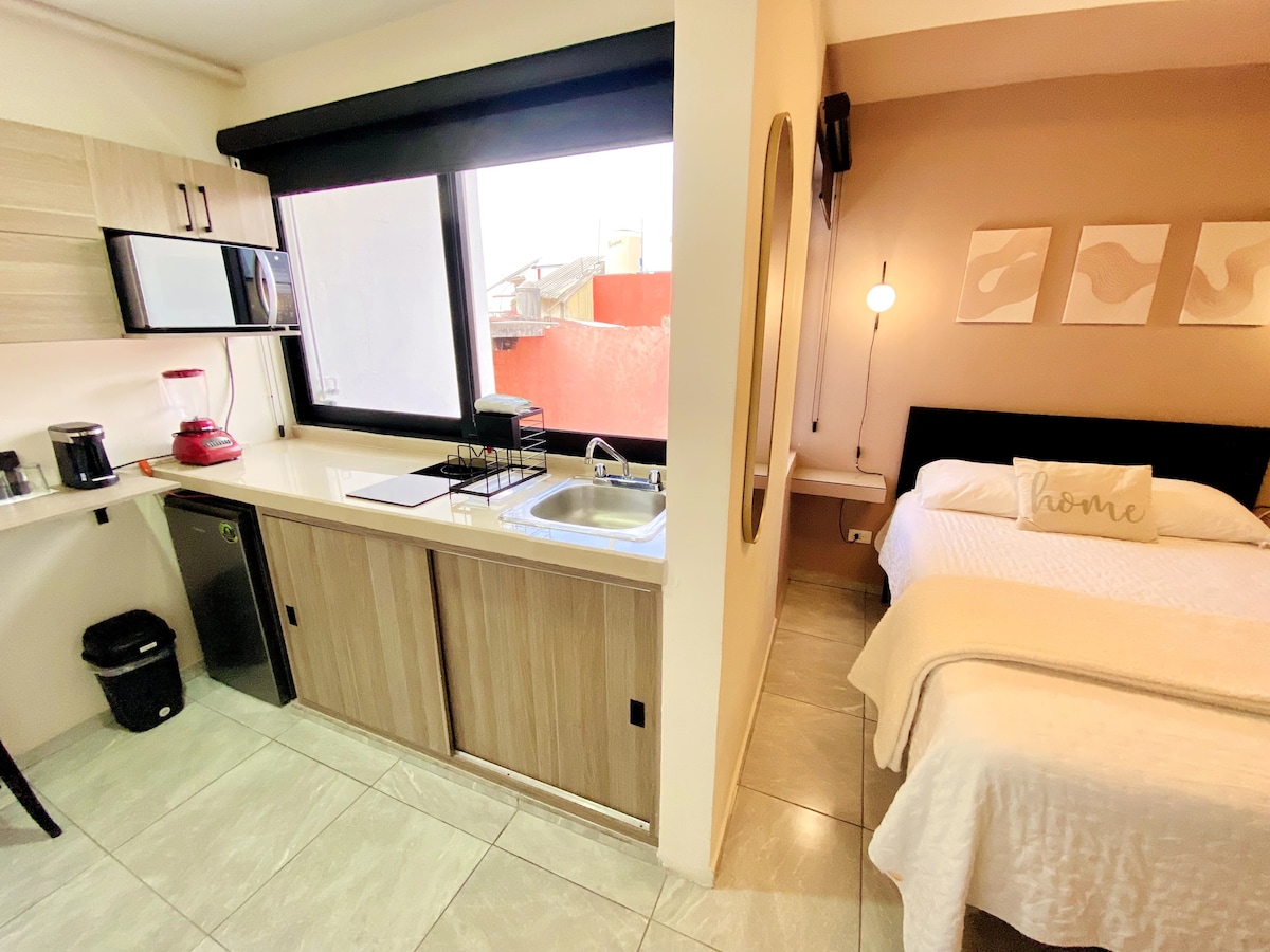 La ubicación privilegiada de este minidepartamento te permite acceder fácilmente a todo lo que la ciudad tiene para ofrecer. Estarás a pocos pasos de restaurantes, tiendas, y lugares de entretenimiento. Además, la zona cuenta con excelentes opciones de transporte público para que puedas explorar la ciudad de manera cómoda. El departamento cuenta con una pequeña cocina para esas mañanas en que prefieres desayunar tranquilo antes de salir a explorar el centro histórico.