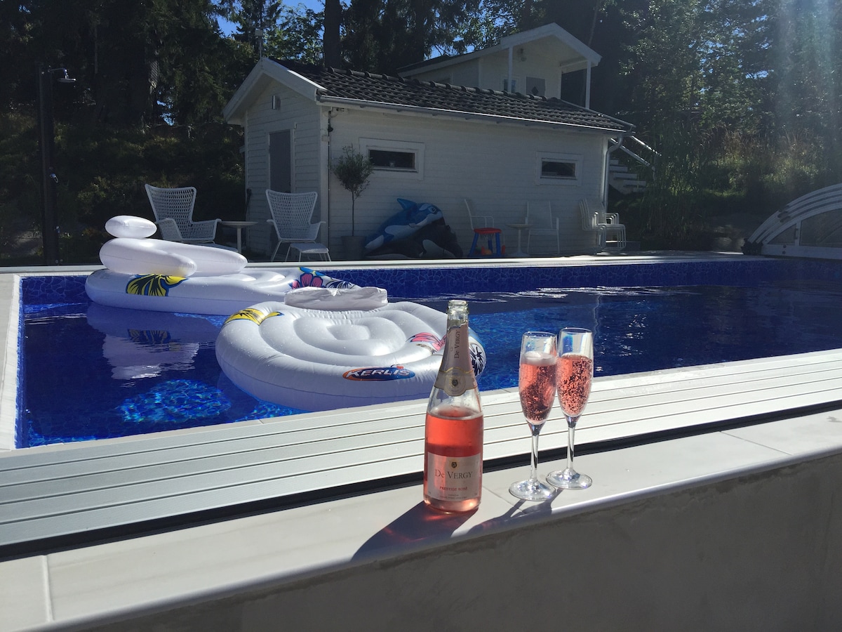 迷人的泳池别墅,靠近湖泊,距离斯德哥尔摩15分钟