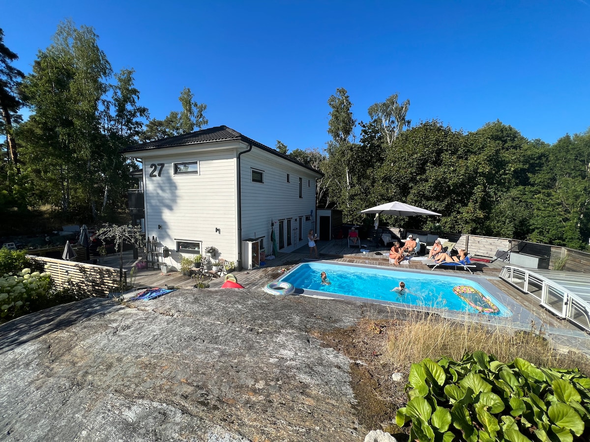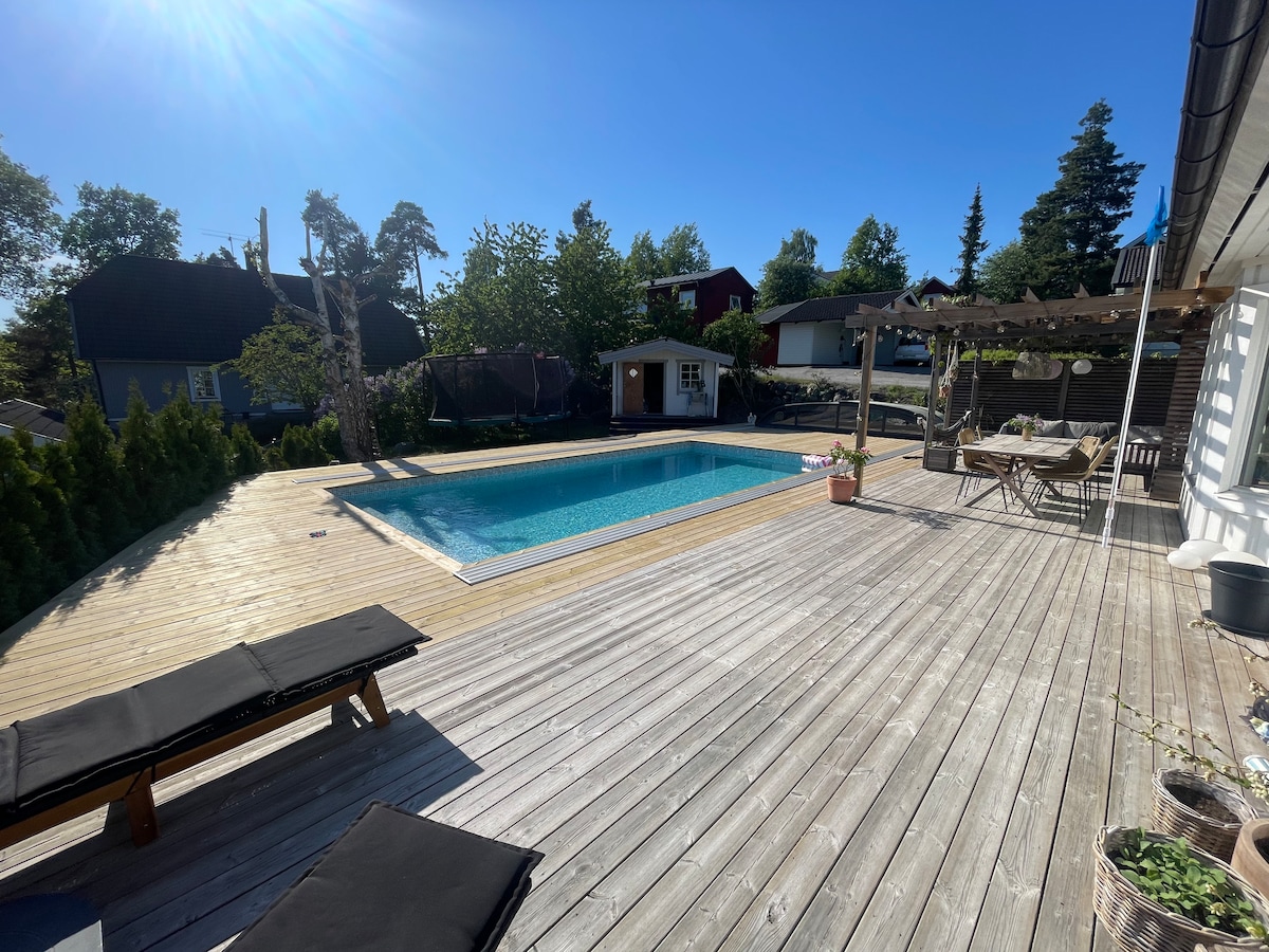 Solsidan宽敞的泳池别墅,距离海滩5分钟