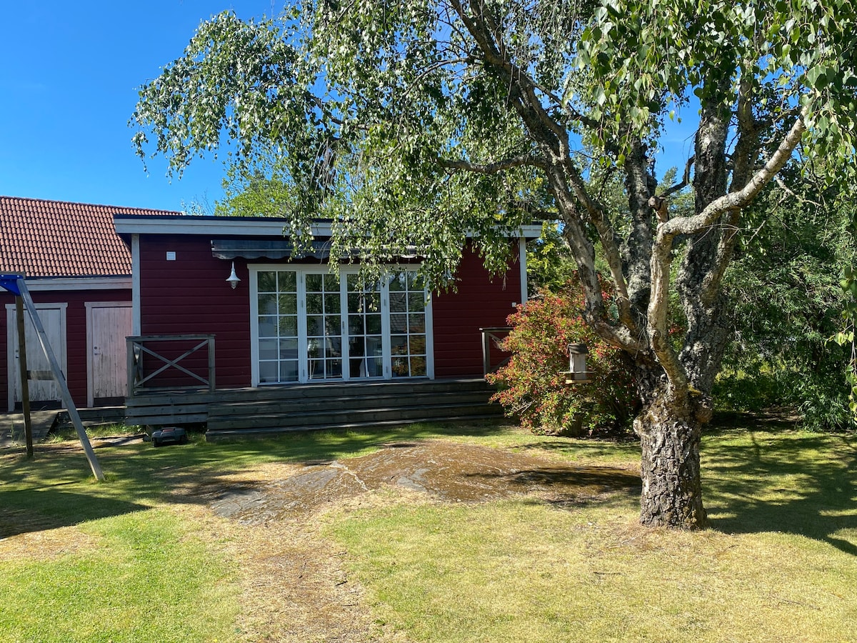Guesthouse by the sea on a quiet point. Bathrobe distance to a dip in the ocean. Enjoy sun all day. Possible to borrow SUP board and if you come for a sailing event with your own RIB/dinghy you can park it at the dock shared with the neighbour. I have some bicycles you can borrow as well. Small kitchen with microwave, small stove, air fryer and refrigerator with small freezer. 700 m to commuter train towards Stockholm. You can park your car for free on the property.