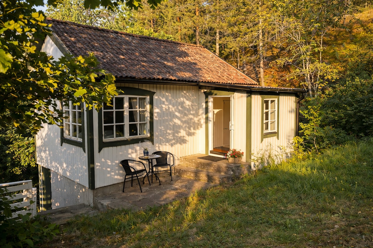 Charming cabin that fits up to six people. Please be advised that it is a rather small cabin and not a house, so if you are six adults and not used to Scandinavian cabins it may feel a bit tight. Toilet in the cabin and access to a shower/sauna in an adjacent building and a gazebo in the garden. The cabin was entirely redecorated and a new kitchen installed in September 2019. Most furniture is from 2016. Possible to get to it by public transportation, but even better if you have access to a car.