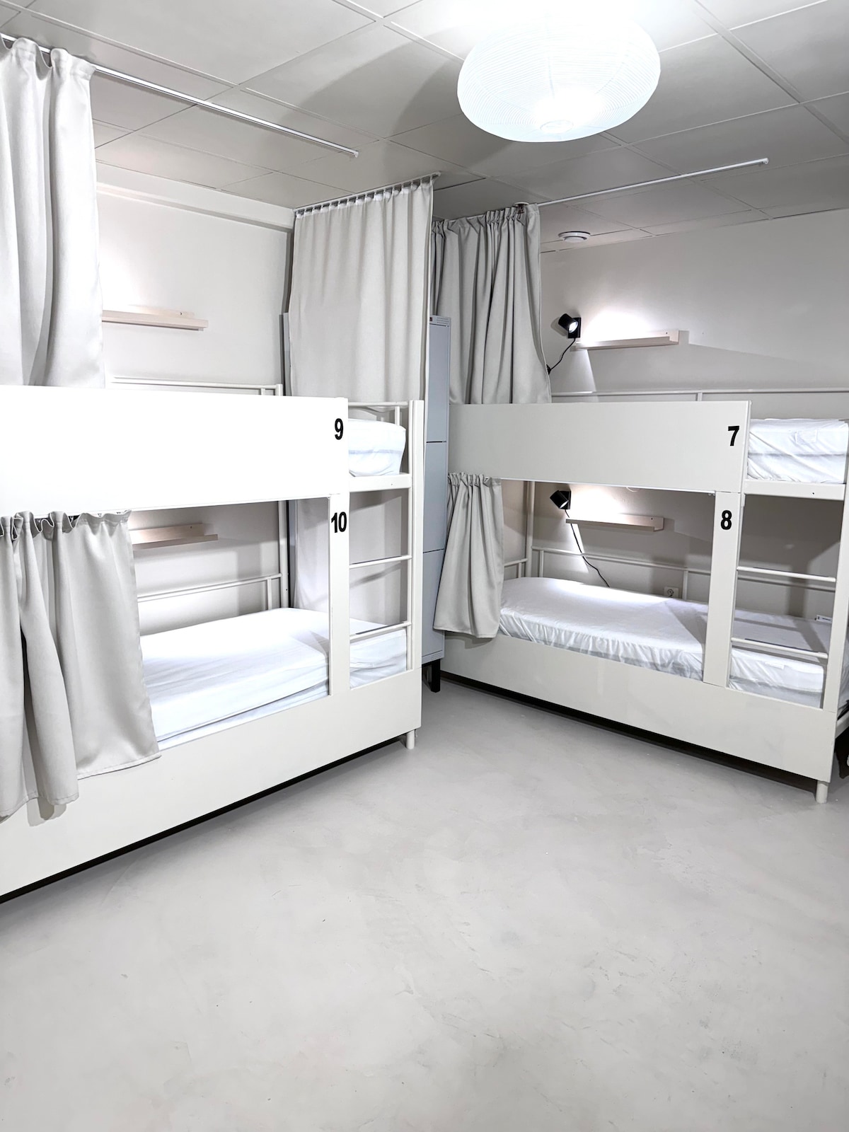 Hostel Nomad Gärdet is a premium hostel for backpackers and travelers. Your quiet, comfortable oasis, just a step away from the city buzz. The hostel was just renovated in the Scandinavian nomad design style theme, so everything is brand new and fresh. Each room has a private bathroom. THIS ROOM HAVE NO WINDOWS. All the beds come with privacy curtains, shelve, lamp and electrical plugs. The hostel is perfect for groups large and small, with a nice mix of 6-bed and private and family rooms.