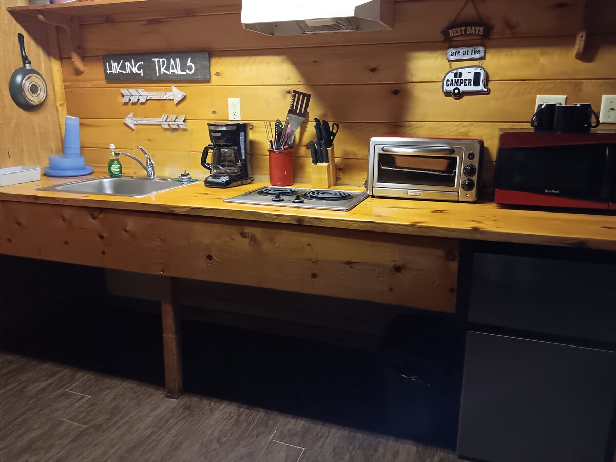 Bring the whole family to this great place with lots of room for fun, kayaks available for rent, baitshop, paddle boat for small pond (for bunkhouse guests only), firepit, bbq pit, griddle, walking distance to river. Fishing pond catch and release. (Bunkhouse guests only) Right off hwy 7, there is traffic noise. No satellite nor cable. Roku only.