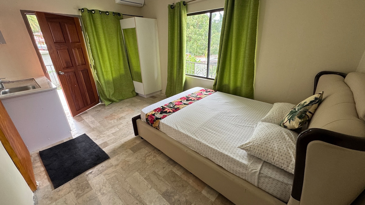 Studio apartment. 5 mins drive from Nadi Airport. Centrally located in Namaka, Nadi. Walking distance( 5 to 10 minutes) to supermarket, vegetable market, banks, doctor, post office, Coffee shops, bakery, Cinema, service station and anything which you may need. Room is fully furnished with a large bed, wardrobe, air condition/fan, table/chairs, fully equipped kitchen( all utensils), fridge, washing machine etc.. Pick up and drop off can be arranged.