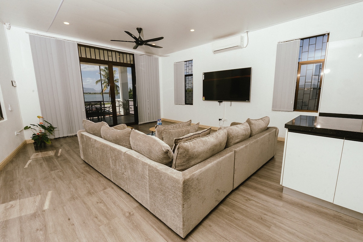 The Waterfront Sunset Apartment is located in a serene waterfront space in Fantasy Island, very close to Airport Nadi and Port Denarau, and has a magnificent sunset view of the most beautiful attractions of Nadi bay. This charming apartment has a large swimming pool with an extraordinary view of the waterfront, equipped with a poolside dining table and a BBQ grill so you can enjoy your meals. In addition, there is a jetty, so you can experience tropical nature.
