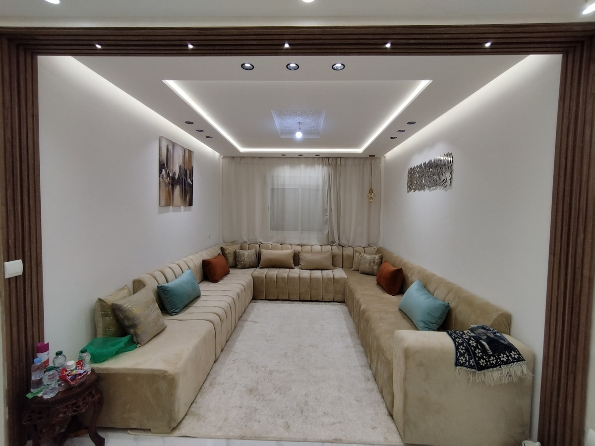 Maison familiale moderne et élégante située à Hay Al Matar, Nador, dans un quartier calme et sécurisé, proche de toutes les commodités. Logement spacieux et entièrement équipé, idéal pour familles et groupes . Il comprend 5 chambres avec télévision, 3 salles de bain modernes, 2 cuisines équipées (lave-linge et lave-vaisselle), un salon confortable, Wi-Fi, climatisation, garage privé et petite piscine pour enfants. Confort, intimité et tranquillité pour un séjour agréable.