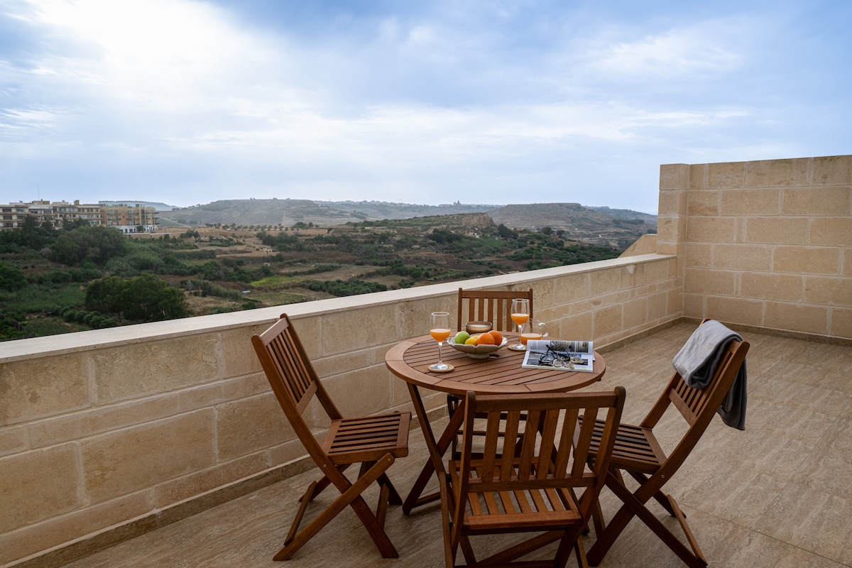 Nestled between the picturesque Gozitan landscapes, in the charming town of Qala, you will find this cosy maisonette which is sure to give your stay that extra bit of magic. The maisonette was built in typical Gozitan style which boastfully displays the honey coloured limestone found in the Maltese Islands and holds within it beautifully locally crafted wooden furniture which gives the whole place a rustic feel. It is filled with natural light and flaunts spectacular views of Gozitan countryside