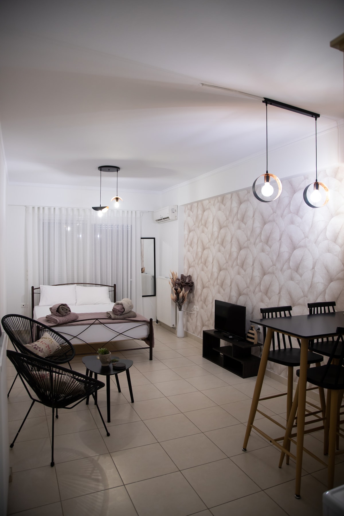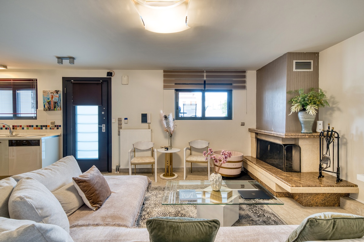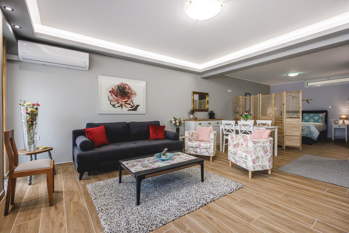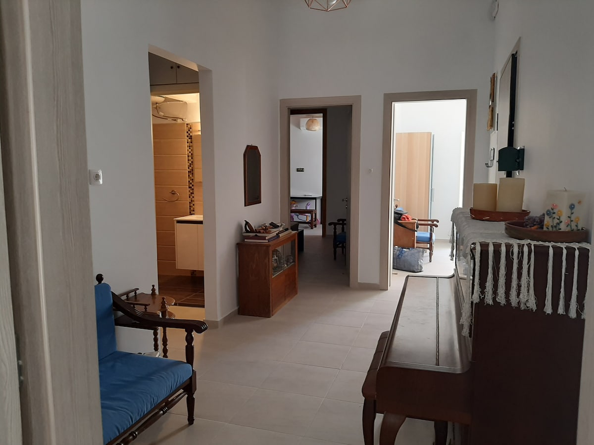 The apartment (76m) is quiet, fashionably furnished and fully equipped with balconies facing a garden. Always clean and filled with all the necessities. It is 10 minutes walk to the old town and 100 metres far from bus stop to Athens. Free parking space is available. Accommodation can be provided to couples, families, friends and business travellers. Our main goal is to help you feel at home, relax and enjoy our beautifull city...