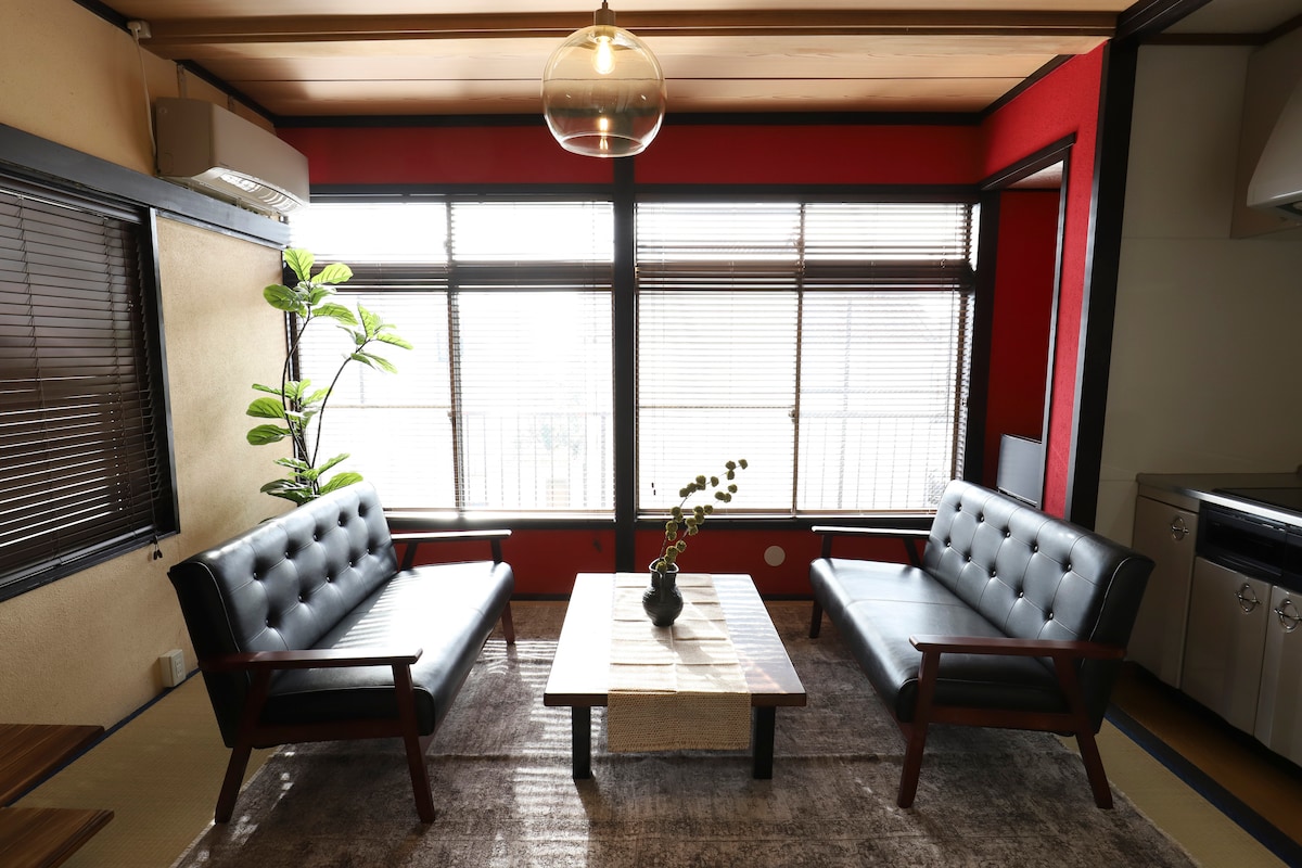 古民家をリノベーションした古き良き昭和を感じられる造りの1棟貸し一軒家です。 昭和の良い部分を残しつつ令和の新しさも取り入れた、昭和と令和が融合された空間が体験出来ます。 縁側から和風の庭を眺められます。お風呂からも和風の坪庭が楽しめます。 キッチンカウンターでお酒を楽しめます。エモい空間でインスタ映えします。 玄関に広い土間スペースがあり、自転車やスキーなどアウトドア用品など大きな荷物の保管にも最適です。 吹き抜けとなっている2階はワーキングスペースとして利用出来ます。 他のお客様と一緒になることが無い、閑静で快適なプライベート空間です。 寝室にベッド2台、リビングの畳の上に布団を敷けば最大5人まで宿泊可能です。 冷蔵庫、電子レンジ、炊飯器、洗濯機などが揃っていますので長期の滞在にも最適です。 国宝・善光寺まで徒歩5分。近くにコンビニや飲食店、カフェなどがあります。 駐車場は3台分あり、お車で戸隠や志賀高原、妙高方面へのスキー・スノーボード、ゴルフ、キャンプなどレジャーの拠点としてご利用いただけます。北信濃、飯山、野沢温泉地獄谷スノーモンキーなど観光地めぐりの拠点としても便利です!