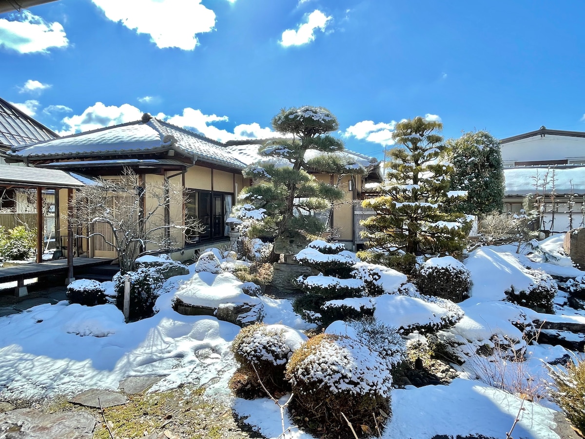 The unique experience at the former Japanese traditional Kimono shop(about 97years old house). This family-friendly and the newly renovated house is located in the very traditional district and the calm but convenience area in Nagano city. The house is authentic and unique as it was a traditional Japanese clothing (Kimono) shop before. You would feel like your own home away from home. 5 minutes walk to the Zenkoji temple and 4 minutes to the bus stop for Togakushi national park.