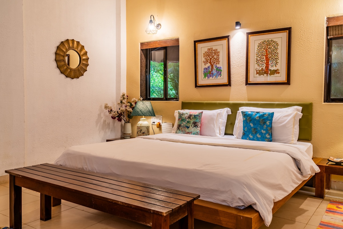 Blue Sky resort is located near the serene Varsoli beach - the closest beach from Alibag The space excels in giving you a coastal, gorgeous, quaint, alluring and delightful experience during your stay with us that it will make it your best holiday home These beautifully appointed double rooms, spanning roughly 180 sq ft, offer a serene retreat for two. Each room is designed with refined décor, a plush double bed, and an ensuite bathroom—perfect for those seeking comfort with a personal touch