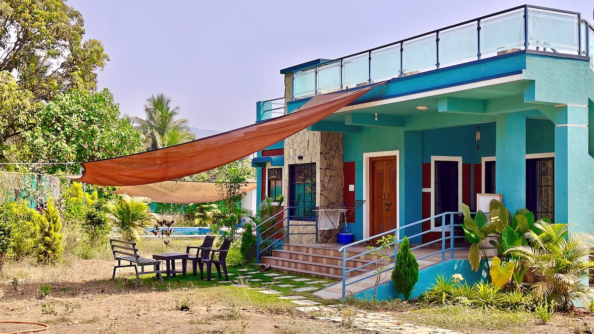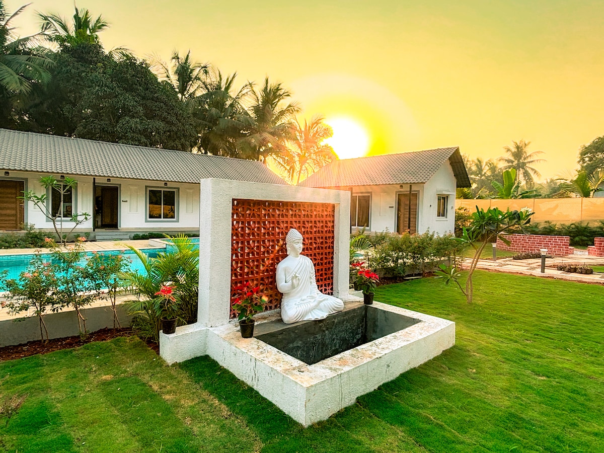 Surrounded by the beautiful verdant hills, accompanied by the fresh Sahyadri ranges stream running its edge offers a blissful sanctuary away from the chaos of urban life. At our quiet place, you are embraced by the rustling of leaves, the melodious bird calls. The unique, warm-toned, earthy finishes complement whitewashed walls to create a calm atmosphere. Make the most of the tropical weather spend your day floating in pool, walking barefoot on the lush, beautifully manicured lawn.