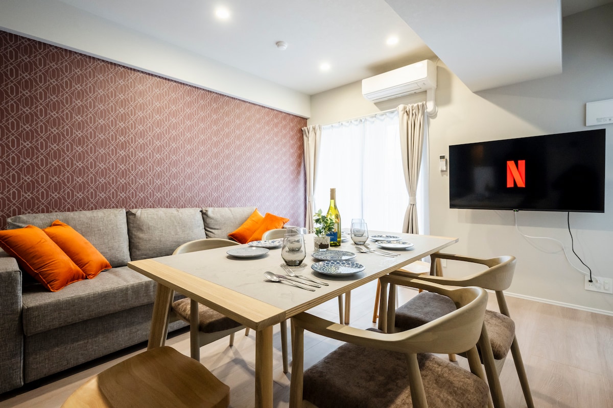【忘れられない長崎滞在を叶える、約200㎡の上質空間|CocoPaku長崎Family Suite】 当施設は思案橋まで徒歩1分、新地中華街まで徒歩3分、観光もグルメも徒歩で完結するロケーションに、最大10名で泊まれる一棟貸しです。中心地では希少な【駐車場2台無料】付きで、親子三世代やグループ旅行に最適。 大人数でもゆったりと過ごせる広々リビングには大画面シアター&Netflix対応TVで映画館気分。琉球畳の匂いが香る和室では日本文化を感じ、お子様との安全な遊びの空間に。大人数でも料理ができるキッチンも完備し、「泊まるだけじゃない」思い出に残る滞在を叶えます。 <おすすめポイント> ・新地中華街 徒歩3分/思案橋 徒歩1分 ・ペット同伴OK ・無料駐車場3台(※予約制) ・BBQ設備(※予約制 +5,000円) ・高速Wi-Fi ・大画面プロジェクター&Netflix対応TV+大型ソファ ・ボードゲーム(ジェンガ、黒ひげ、UNO、トランプ等) ・3口コンロの広々キッチン(冷蔵庫/電子レンジ/ケトル/鍋/ワイングラス) ・子ども用食器 ・洗濯機+独立乾燥機完備(長期滞在にも◎)