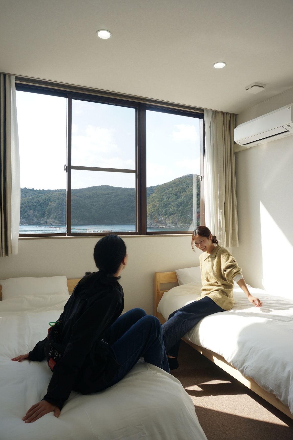 [National Park Base / HUB Unzen] Operated by HUB Unzen. âŒLake View Tatami Spacious 10-tatami Japanese room with panoramic view. Relax on the "Engawa" (veranda) or sleep on Futons. Private shower booth & toilet inside (Hot springs nearby). âŒWork & Loc Fast WiFi & Scenic Co-working lounge. 3-min walk to Unzen Jigoku, Onsen town & trails. âŒAmenities AC, Fridge, Towels. Shared Kitchen & Laundry. Parking: Free (First-come, first-served). No meals (BYO OK).