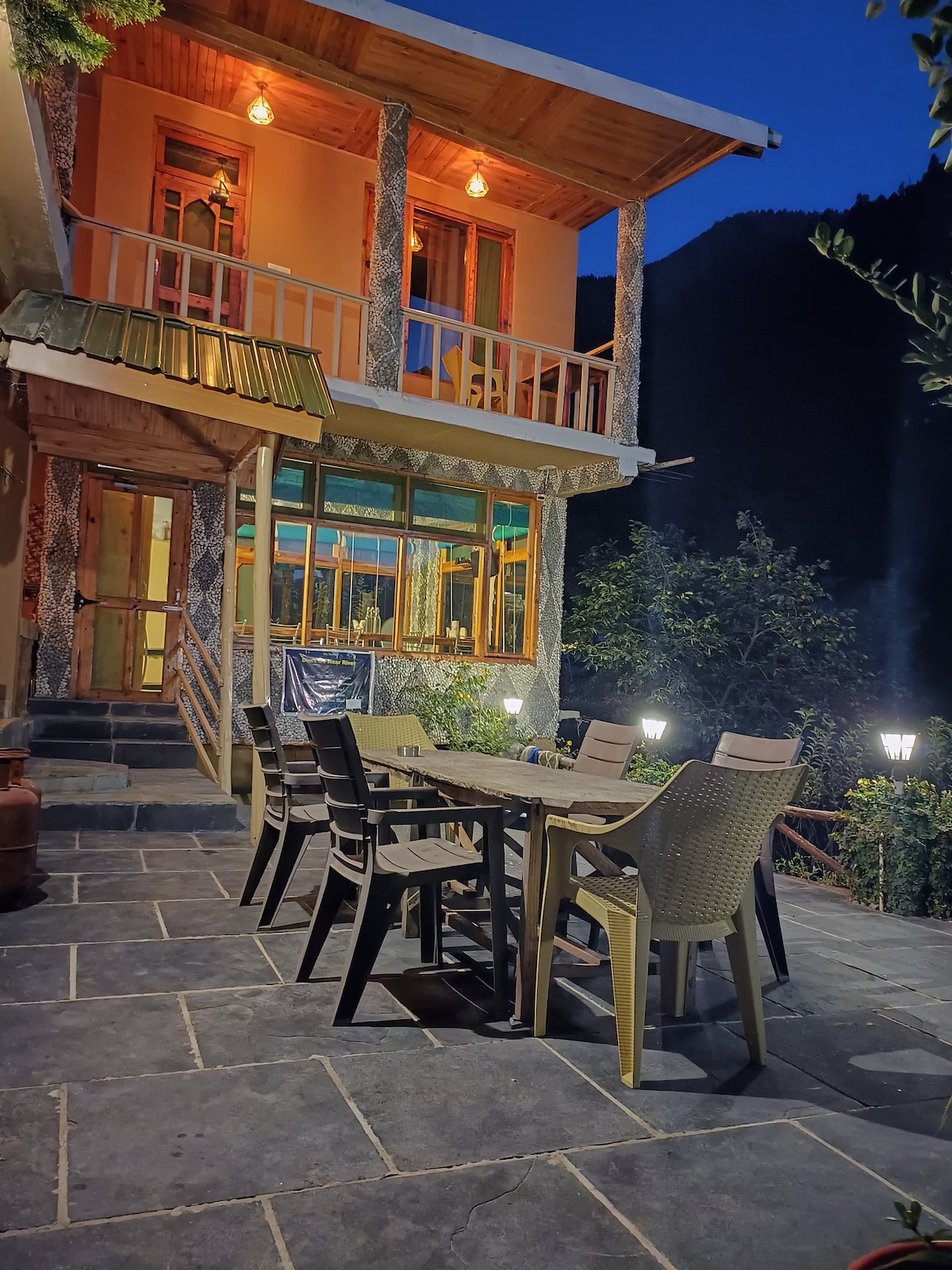 Nestled in the heart of Tirthan Valley, just a 5-minute easy walk from the parking, this serene retreat sits right beside the crystal-clear Tirthan River, surrounded by majestic mountains. Perfectly suited for couples and families, it offers complete privacy and a chance to experience nature at its purest.
