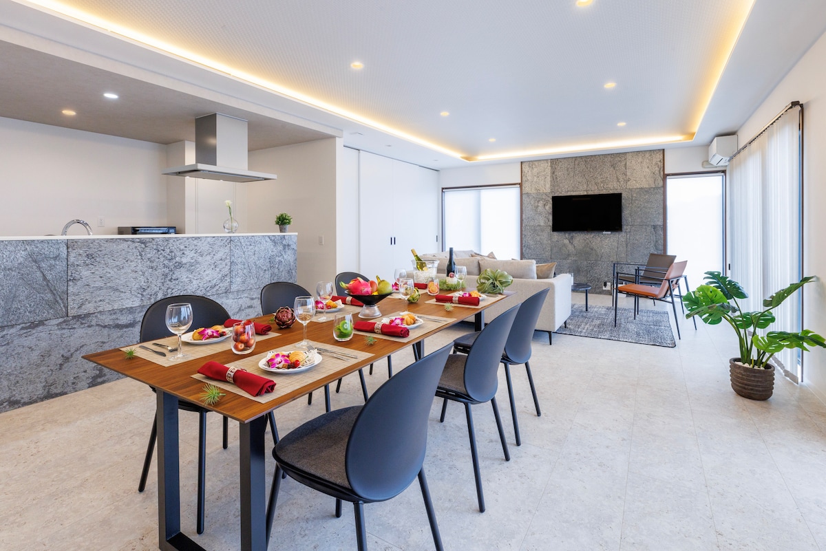 2023年新建竣工,海濱獨棟木造別墅,距離沖繩最具盛名的婚紗拍攝聖地【喜瀨海灘Kise Beach 】僅50m,附近有付費型海上樂園以及水上運動等娛樂項目。 從那霸機場出發,沿著沖繩國道58號線驅車前行1小時左右即可到達本別墅設施。 最近的便利店在沿大路往北600米的地方,步行10分鐘,驅車1分鐘可達。 最近的超市距離7.7公里,驅車10分鐘可以到達。 別墅附近有直達那霸機場,及各景區的巴士,徒步5分鐘內有火鍋店,沖繩料理,牛排店,沖繩蕎麥麵,歐式自助餐等飲食店以及24小時便利店,沖繩星級高爾夫球場,盛名的各類觀光景點,海上運動中心,5星級酒店等活動娛樂地點,均驅車10分鐘左右即可到達。 建議入住成人人數為3-6名,加上小孩,最大入住人數為10位, 兩棟獨棟別墅同時預約時,最大入住人數為20名。適於家族旅行・修學旅行・情侶度假・新婚蜜月旅行・公司員工團建・高爾夫賽事旅行等活動。