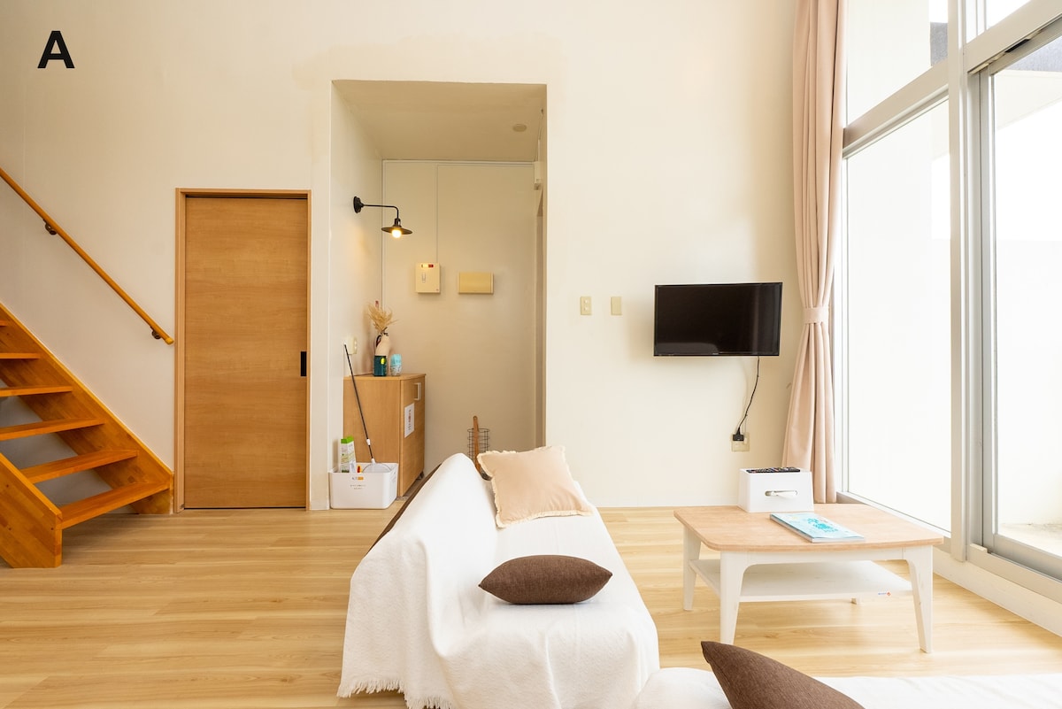 沖縄県北部の本部町にある自然が多く地域で2棟の別々のロフトアパート(A or B)。4泊以上10%オフ。14泊以上20%オフ。1棟のアパートに最大4名宿泊可。隣同士2棟アパートも同時にご予約をご希望の場合はご連絡下さい。6歳以下のお子様は宿泊無料。電気自動車充電無料(200V・3.0kW)コンセント。充電ケーブルなし。 ― Motobu Hills Duplex ― 天井が高い二世帯住宅。ナゴパイナップルパークまで10km。SPA JUNGLIAまで9km。エメラルドビーチまで8km。瀬底ビーチまで8km。備瀬のフクギ並木まで8km。美ら海水族館まで7km。DINO恐竜PARKやんばるまで7km。海洋博公園まで5km。人気の絶景ベルビーチゴルフクラブまで3km。本部町営市場まで2km。 最寄りのコンビニまで1.3km。車が必要です。少し離れた地域で、ゆっくりお過ごし下さい。Wi-Fi、ワーキングスペース(オフィスデスク&チェア)もあるので出張、リモートワークにも便利です。 現在、道路の向かい側に工事が行われています。 ご不明な点はご遠慮なくご連絡下さい。