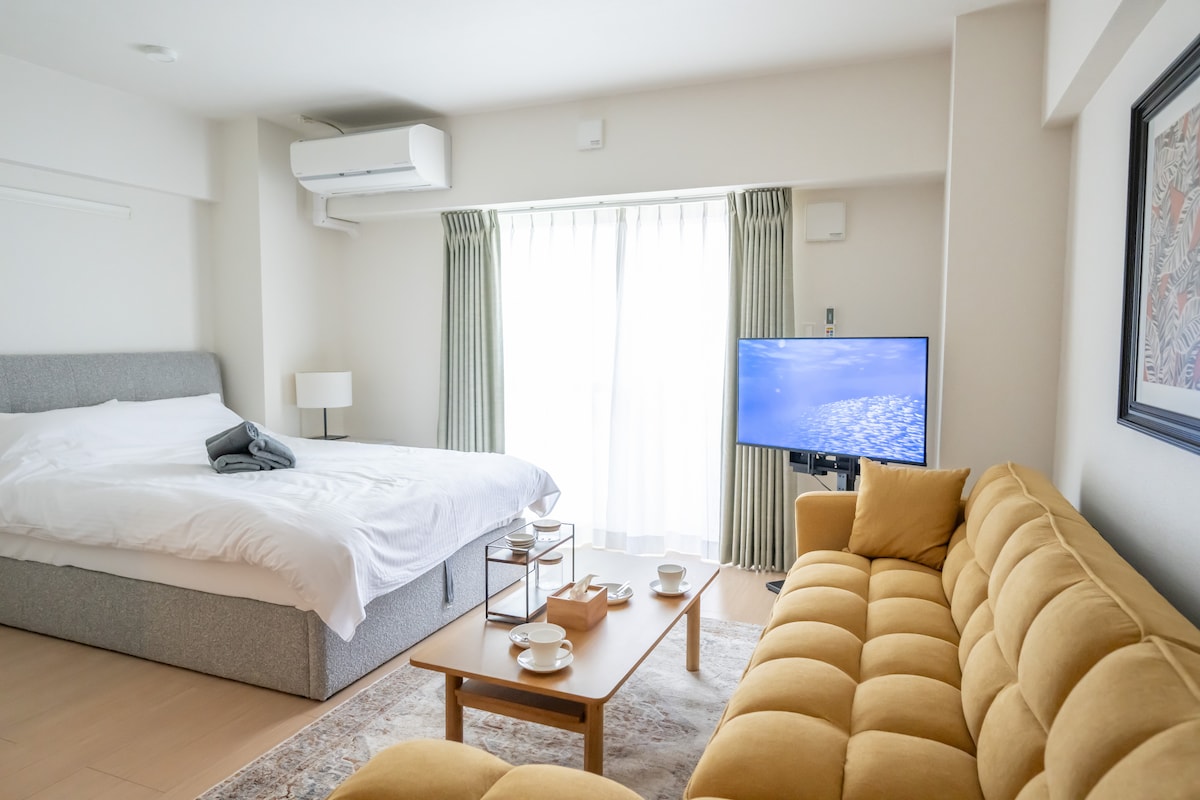 Time slip into a 70’s American motel! Built during the U.S. occupation of Okinawa, this former motel was renovated by an architectural design office and is now run by us as a boutique motel. Located in central Okinawa, where Japanese and American cultures blend, it’s the perfect base for the beach, city, and shopping. Ideal for travelers, long-stay guests, and locals seeking a cozy hideaway. *** This listing is for our Double Bedroom. For the Twin or Triple Bedrooms, please visit our Host Page.