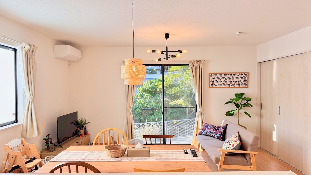A fully renovated house in a peaceful residential area. The three bedrooms are divided by doors, allowing multiple family members to stay in privacy. The fully equipped kitchen is equipped with a gas BBQ grill. Located just a 30-sec walk to the popular cafe "PARAMITA", a 2-min walk to the supermarket, and a 3-min drive to the convenience store. The interior is decorated with a selection of furniture and accessories of various nationalities, a unique, stateless atmosphere.