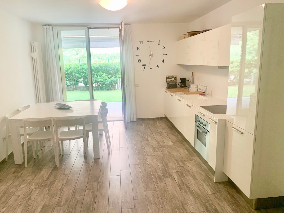Moderno appartamento di 60mq Giardino privato di 40mq Silenzioso, lontano dal traffico Ampio garage privato e parcheggi comuni gratuiti Zona giorno con cucina, grande tavolo e divano Zona notte con 2 stanze, 2 letti (180*200, 160*200), aria condizionata Accesso a piscine e saune (a pagamento) del Villaggio Garda Thermae di cui l'apt è parte A 600mt dal lago, raggiungibile con percorso pedonale. Pizzerie e ristoranti nelle vicinanze Supermercato Lidl a 400 mt CIN: IT022006C2AYQETLGH