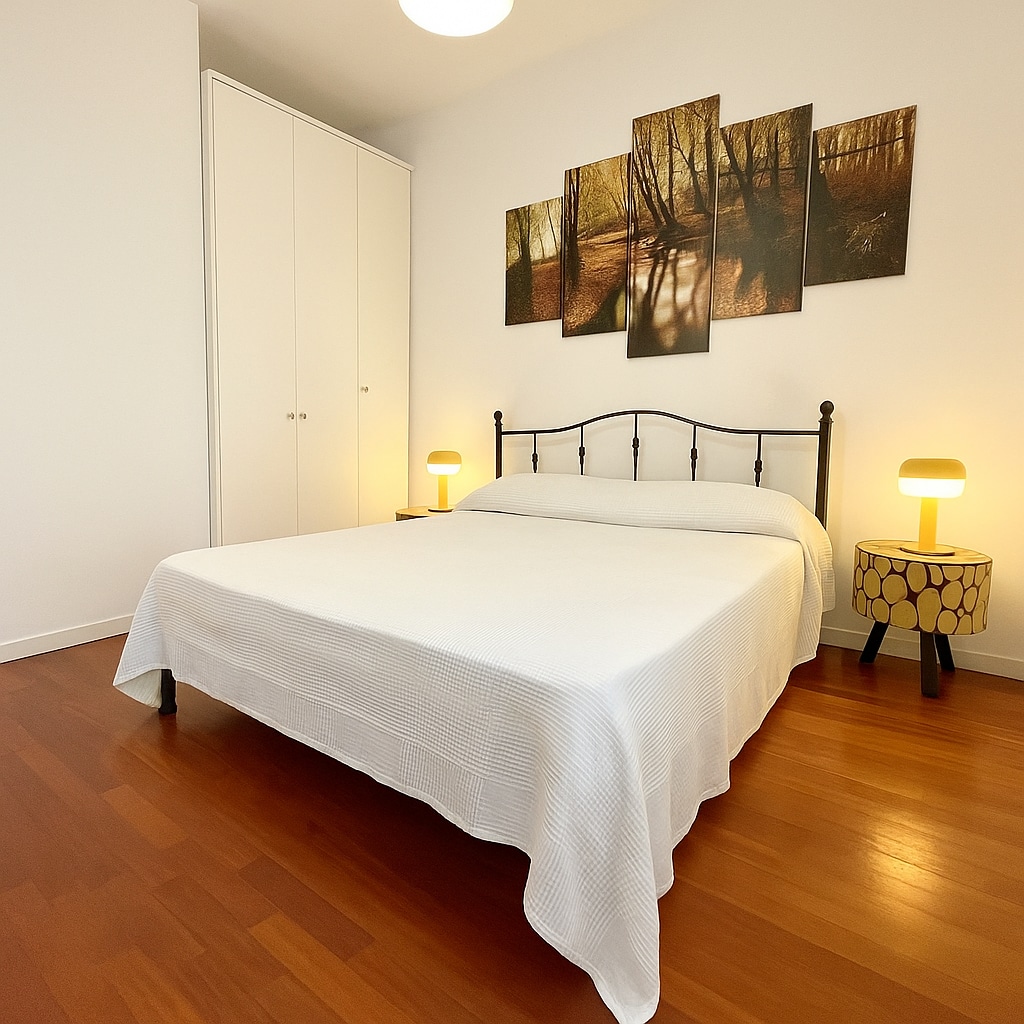 Luminoso bilocale con balcone, completamente ristrutturato e a due passi dal centro di Arco raggiungibile grazie alla pista ciclabile. Posto auto gratuito non coperto, vasto giardino condominiale. Wifi. Biancheria dal letto e asciugamani compresi, così come piccolo kit cucina. Piano cottura a induzione e lavastoviglie. Smart TV. Camera da letto spaziosa che si affaccia sul castello e un divano letto singolo nella zona giorno. CIPAT 022-AT-867027