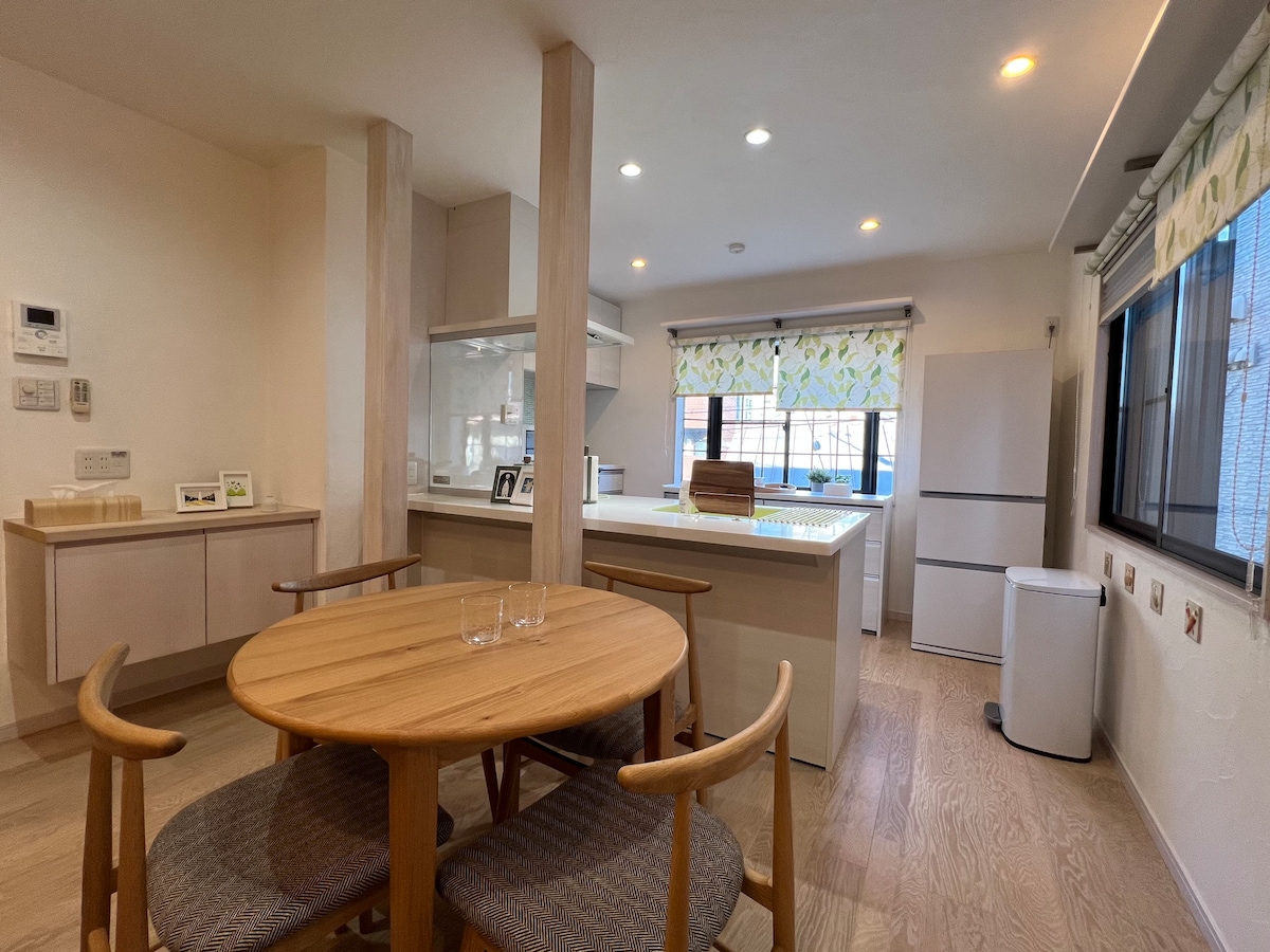 本住宿为位于名古屋城附近的独栋住宅, 环境干净整洁,舒适宜人,特别适合家庭或朋友同行入住。 整个一楼为一组客人专用,配有独立玄关,保护您的隐私,安心入住。坐落于安静宜人的住宅区内,提供一个放松、宁静的住宿环境。 【设施与服务】 ・厨房(配有炊具、电饭锅、电热水壶、烤面包机) ・客厅 ・洗面间、浴室、淋浴 ・洗衣机、浴室干燥机 ・冰箱、空调、暖气 ・免费Wi-Fi ・免费咖啡服务 ・24小时自助入住 ・距离便利店步行3分钟 ・距离药店步行10分钟 ・提供免费停车位 【洗漱用品】 提供洗发水、护发素、沐浴露、毛巾、浴巾、牙刷、吹风机。 地理位置优越,交通便利,是您旅途中放松身心的理想选择。欢迎入住,留下美好的名古屋回忆。 我们诚挚期待您的光临!
