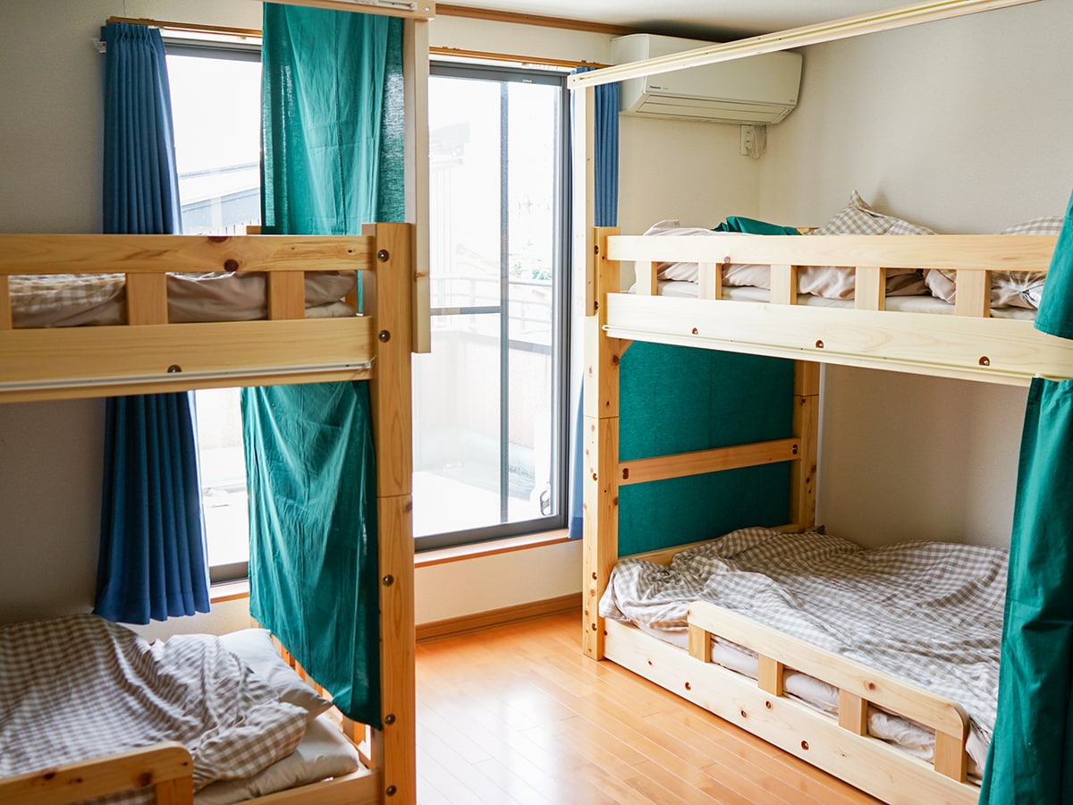 ゲストハウスの2階に位置する、女性専用・6名宿泊できるドミトリーの1スペース。 畳が敷き詰められたお部屋ですので、どこか懐かしさを感じながら 夏は涼しく、冬は暖かく、快適にお過ごしいただけます。 お部屋には、洗濯物の干せるスペースもございます。(共用) 人と人とがつながる新たな宿泊体験をお楽しみください。 ー・ー・ー・ー・ー・ー・ー・ー・ー・ー・ー・ー・ー・ー・ー・ー・ー 以下の時間帯はスタッフが不在となるため館内でのご滞在はいただけません  【10時00分 から 17時30分】  ご理解とご協力をお願いいたします ー・ー・ー・ー・ー・ー・ー・ー・ー・ー・ー・ー・ー・ー・ー・ー・ー ■寝具:シングルベッド1台 ■設備:エアコン/無料Wi-Fi/ベッド近くにコンセント ■アメニティ:タオル/バスタオル/スリッパ 〈共同バスルーム〉 ■女性専用バスルーム:バスタブ付 ■男性専用シャワールーム ※利用時間:~23時/5時~ 〈共同スペース〉 ■リビング テレビ/ダイニングテーブル ■キッチン 冷蔵庫/電子レンジ/電気ポット/炊飯器/IHコンロ/調理器具/食器/カトラリー/コップ