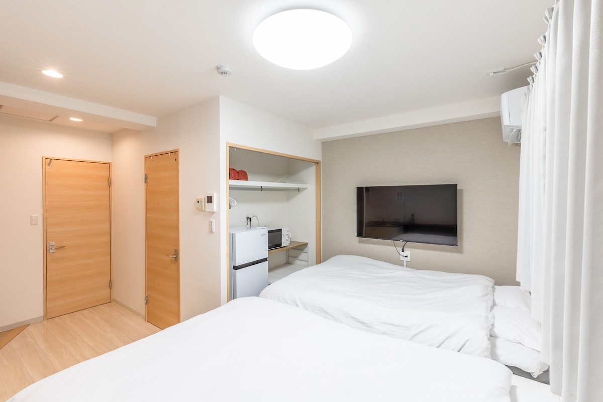 池下駅から徒歩わずか2分。 アクセス抜群の立地に旅の拠点にぴったりな一室をご用意しました。 コンパクトながら清潔感のある33㎡のお部屋には、ダブルベッドが2台。 最大3名まで泊まれるので、カップルやご家族、友人同士での滞在に最適です。 地下鉄東山線を使えば名古屋駅や栄など人気スポットへも乗り換えなしでスムーズに移動可能。 観光にもショッピングにも抜群の便利さを誇ります。 周囲には24時間営業のコンビニや地元で評判のレストラン、居酒屋がずらり。 ホテルでは味わえない「ローカルな名古屋の暮らし」を体験できます。 皆さまのお越しを心よりお待ちしております。 【改装のお知らせ】 ◆2025.12.8〜12.14までお休みして、2025.12.15にリニューアルオープンします。 つきましては2025.12.4迄は最大4名宿泊可能です。 ◆2025.12.15からはベッドを1台減らしてソファベッドとテーブルを導入してもっとゆたったりとお過ごしいただけるようになります! 尚、宿泊人数はソファベッドを入れて最大3名です。