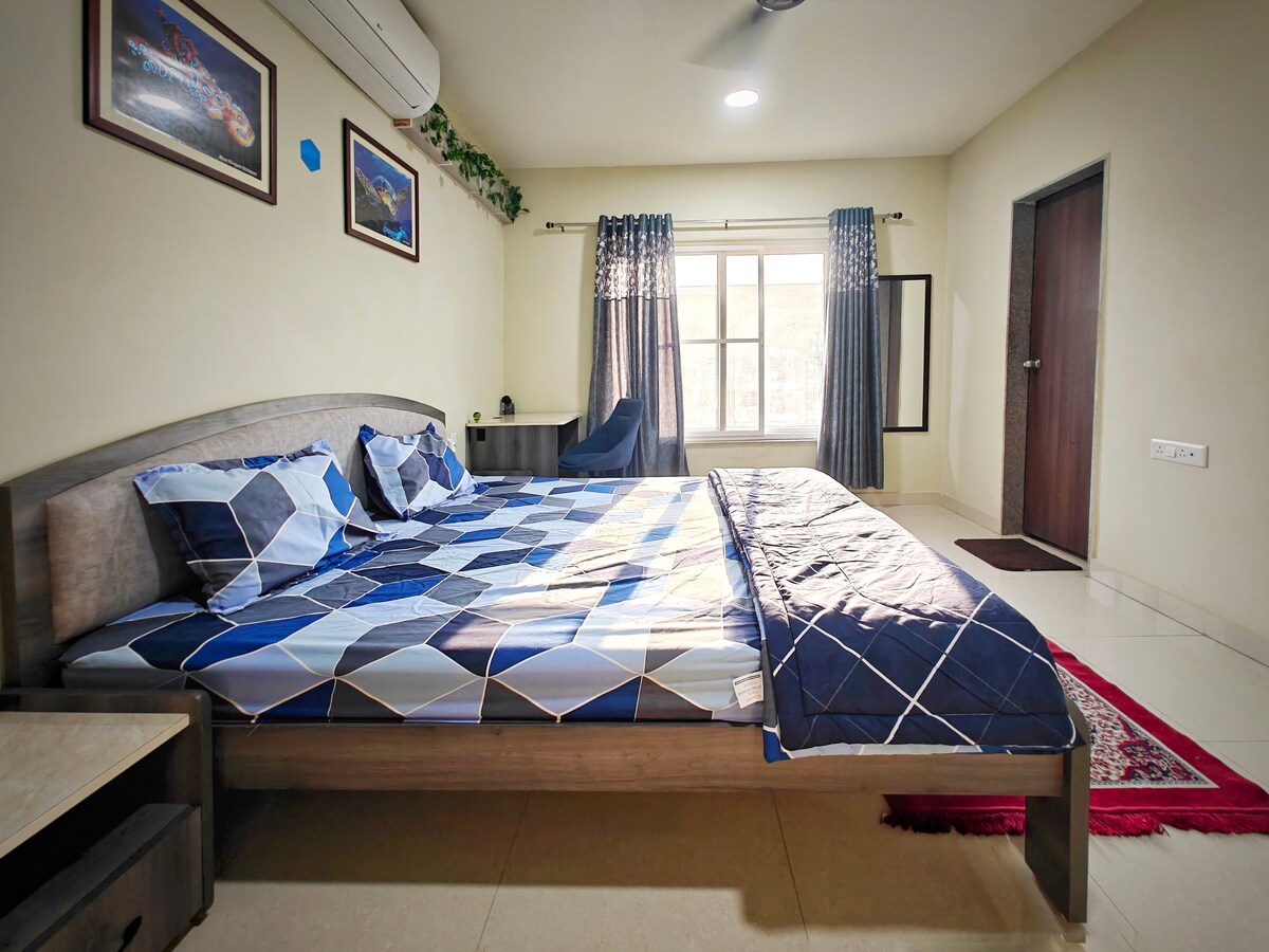 Escape to a peaceful retreat designed for comfort, calm, and convenience. Enjoy an entire 1 BHK apartment exclusively for yourself, just 1 km from MIHAN and 15 minutes from the Samruddhi Expressway. Perfectly tucked away from the city bustle yet only 30 minutes from the center, with round-the-clock security. Zomato, Swiggy, DMart ready, Rapido, and Uber available. Ideal for road trippers, business travelers, medical visits, and relaxing getaways!