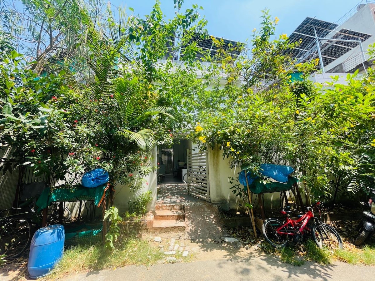 Welcome to TriNest Garden Villa Unwind in this peaceful 2BHK villa with private garden, secure parking, and bright interiors. Enjoy total privacy and comfort perfect for couples or families. Nestled in a calm area near the airport, metro, railway station, cafes, shops, and Cinema, it’s your cozy escape with all the comforts of home. Breathe easy, relax, and enjoy your stay. We’re here to help—reach out anytime with questions. Airport 3.8KM Railway Station 5.2KM Metro Station -Ujwal nagar 1.3KM