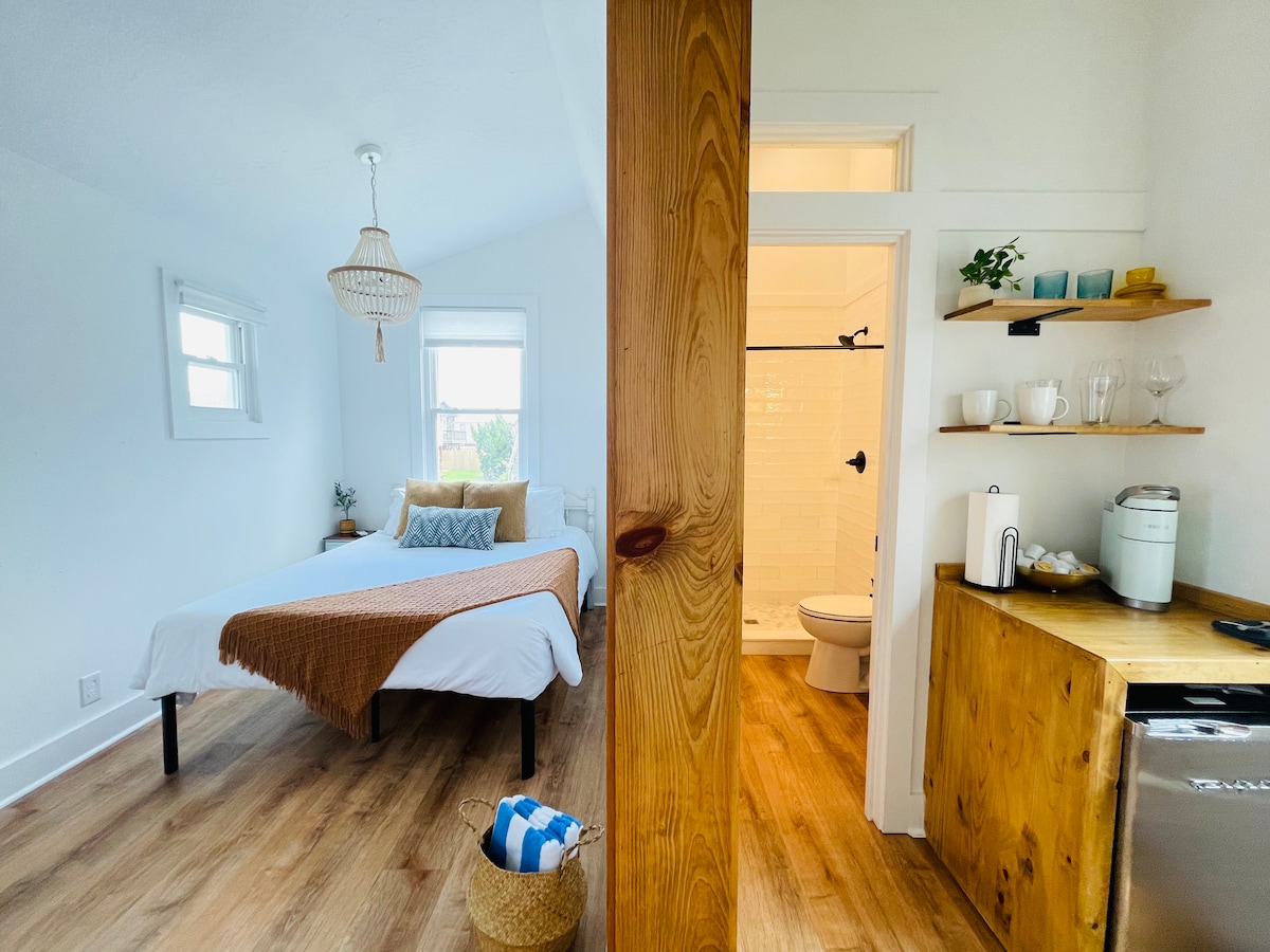 You will love this unique and romantic escape! Just a quick walk to the nearest beach access and close to many great restaurants, this is the perfect getaway for couples. Our studio features a comfortable queen sized bed, smart tv, Keurig coffee maker, mini fridge and a luxurious custom tiled shower.