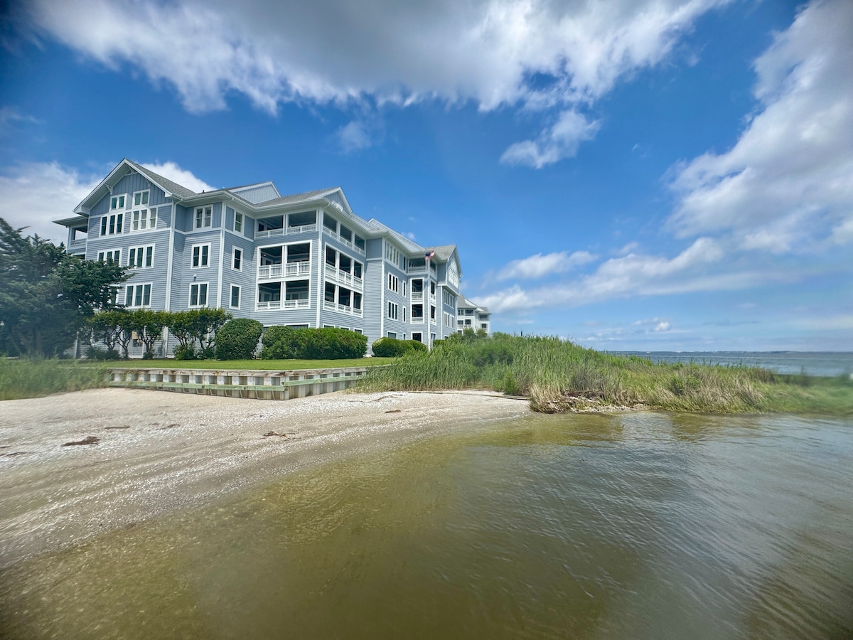 Gorgeous, renovated, quiet waterfront condo in Duck NC on outer banks. Best of everything-amazing sunsets and sound access for swimming, water sports & fishing. Gorgeous beach right across the street (walk .4/mile or free parking). Walk, bike or kayak to Duck shops, boardwalk & restaurants (about a mile). Amazing peaceful location with access to everything. Beautiful views, adjustable vibrating beds & luxury mattresses, spa bathrooms, indoor pool, tennis/pickleball, pier & beach & sound toys!