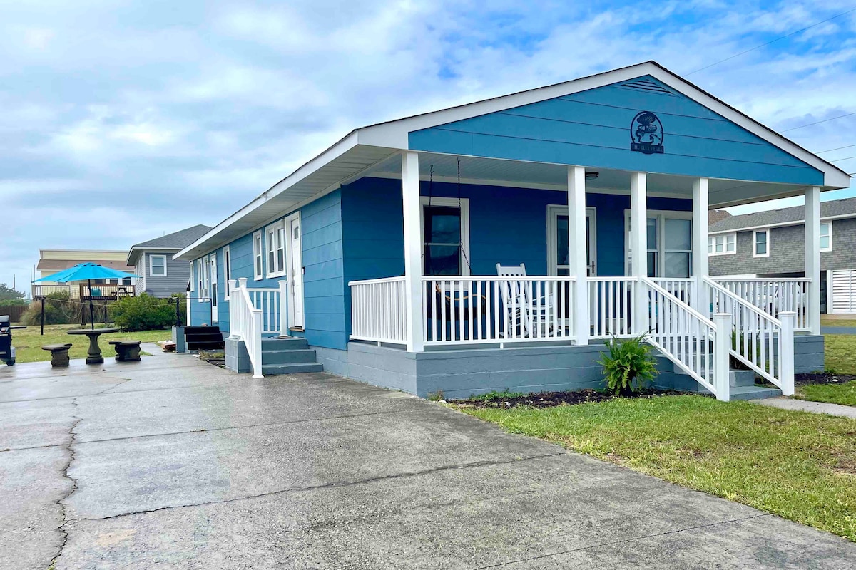 Cackalacky Dreamin' is a classic 1960's beach cottage that is newly refurbished. Just a 2 minute walk to the beach, it has 4 bedrooms, 2 full baths, large kitchen, large living room, a game room, a wide porch with swing a table, and is pet-friendly! It is furnished as a coastal boho cottage with everything you need for a great vacation. (Can be rented with neighboring houses for up to 20 people! See Atlanticwinds and 2ndwind, or ask for details.